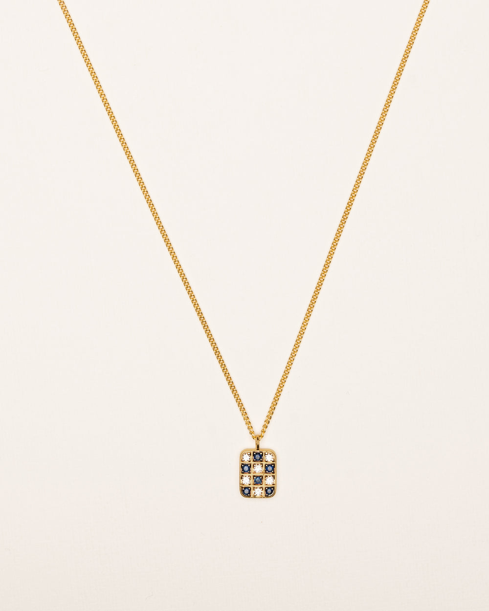 Necklace with sapphire and diamond chessboard pendant in 18 ct. gold