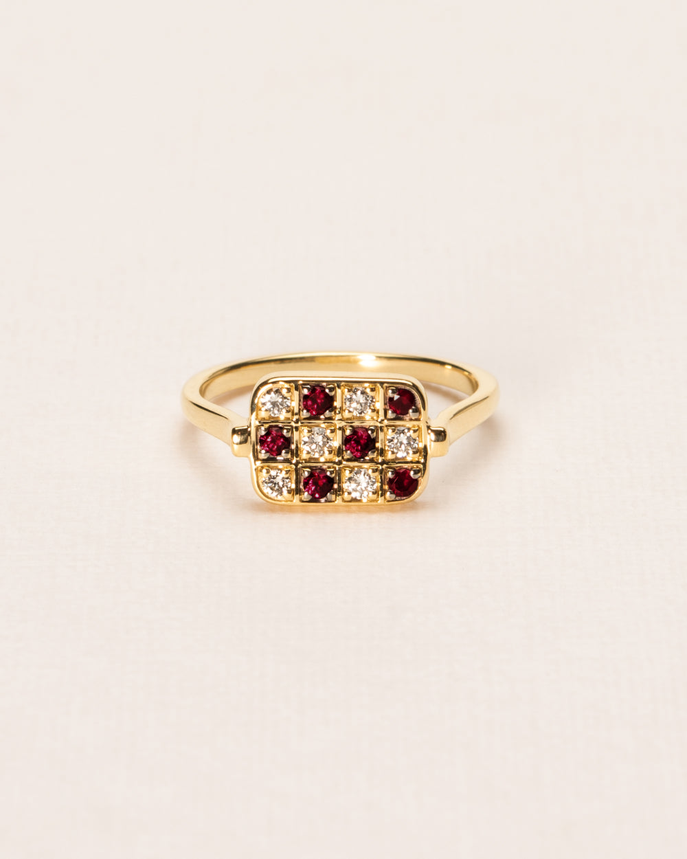 Le Petit Philidor ring with ruby and diamond chessboard in 18 ct. gold
