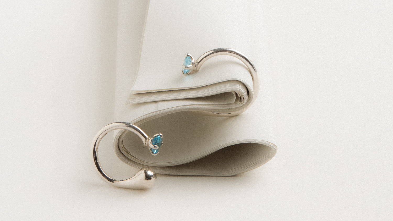 Asymmetric droplet ring with aquamarine crystal in silver