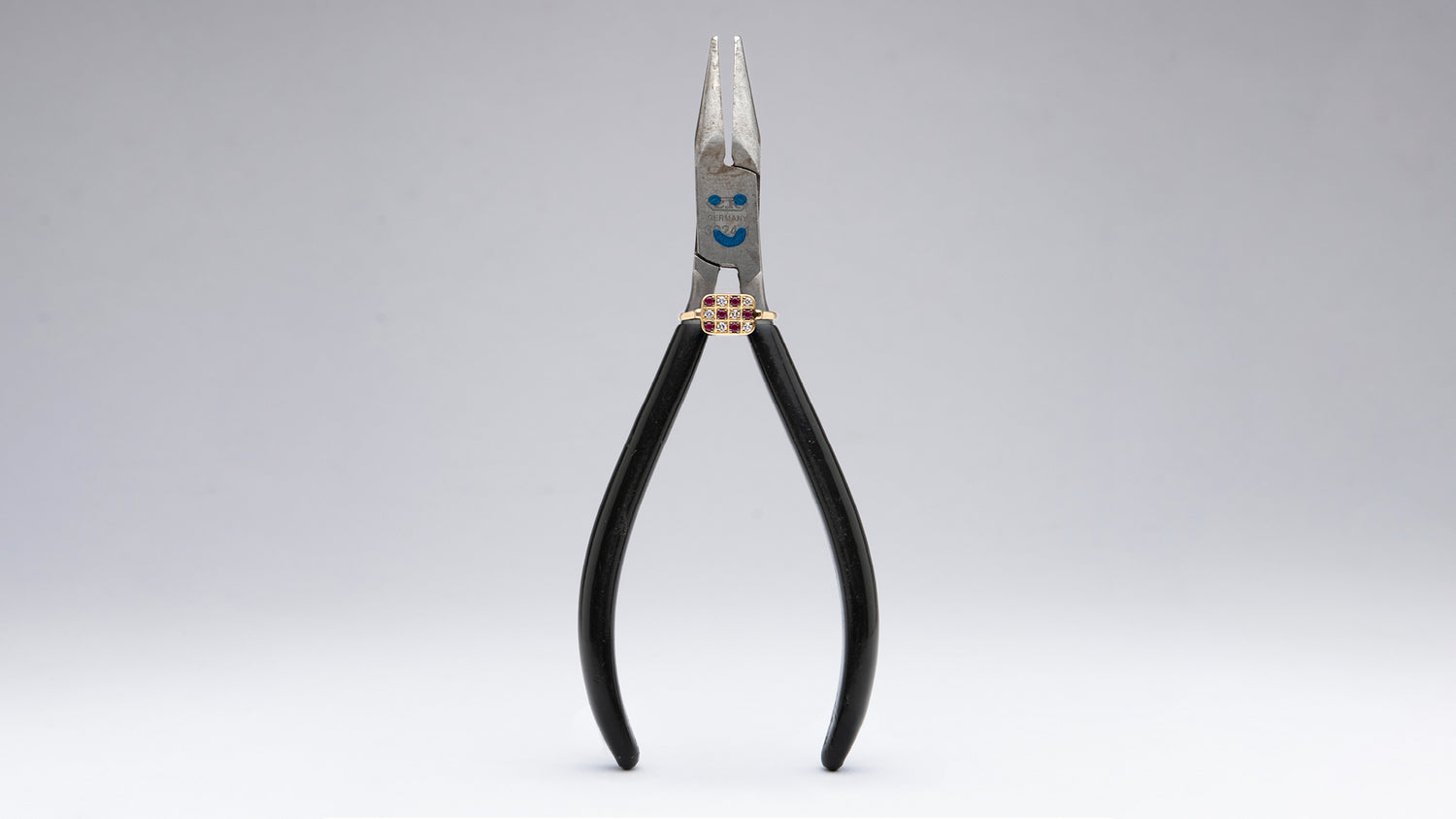 Philidor ring with sapphire and diamond rotating chessboard in 18 ct. gold