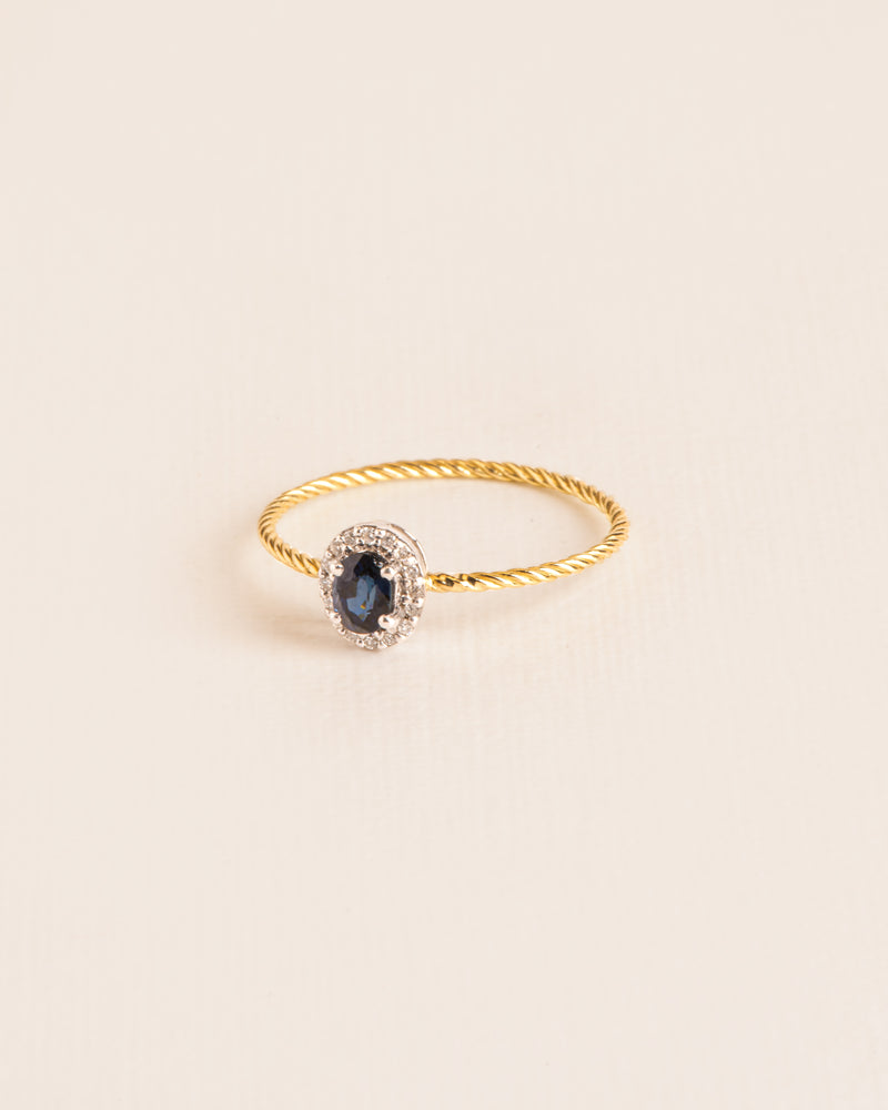 Ring with sapphire and diamond rosette in 18 ct. gold