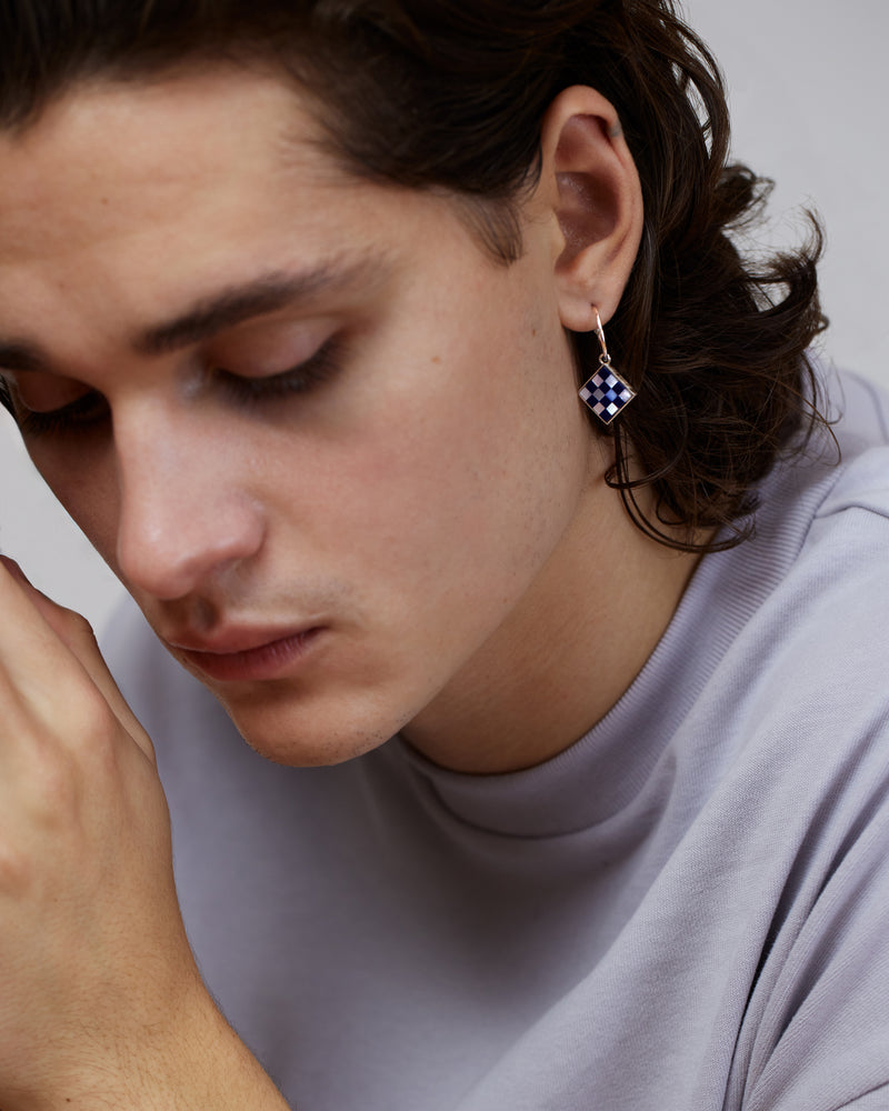 According to the traditional rules of jewellery making, colour is added by means of gems. In the 'La Fêtes des Bêtes' collection it is chess inlay work that brings colour to the jewel. A meticulous work inspired by an old technique often used to decorate cufflinks. Subtle rebels with a love for surrealism, we are drawn to unexpected combinations of materials and techniques, gently adorning your body with tales in silver and gold.