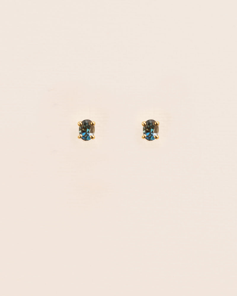 Stud earrings with oval sapphire and diamond rosas in 18 ct. gold