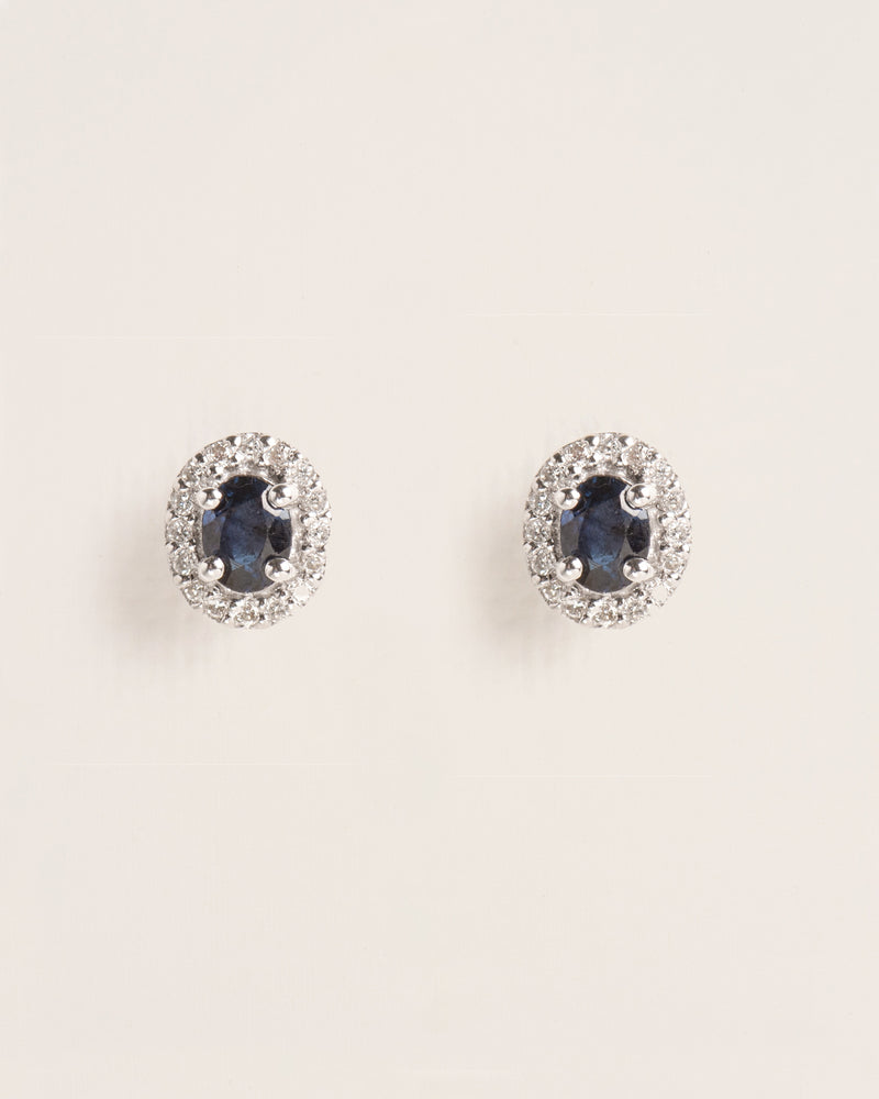 Stud earrings with oval sapphire and diamond rosas in 18 ct. gold