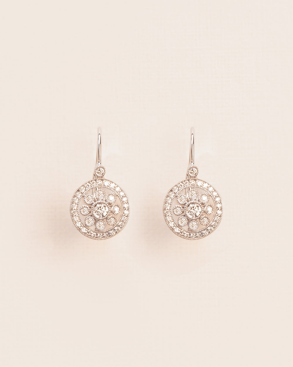 Leverback earrings with cream diamond rosas in 18 ct. gold