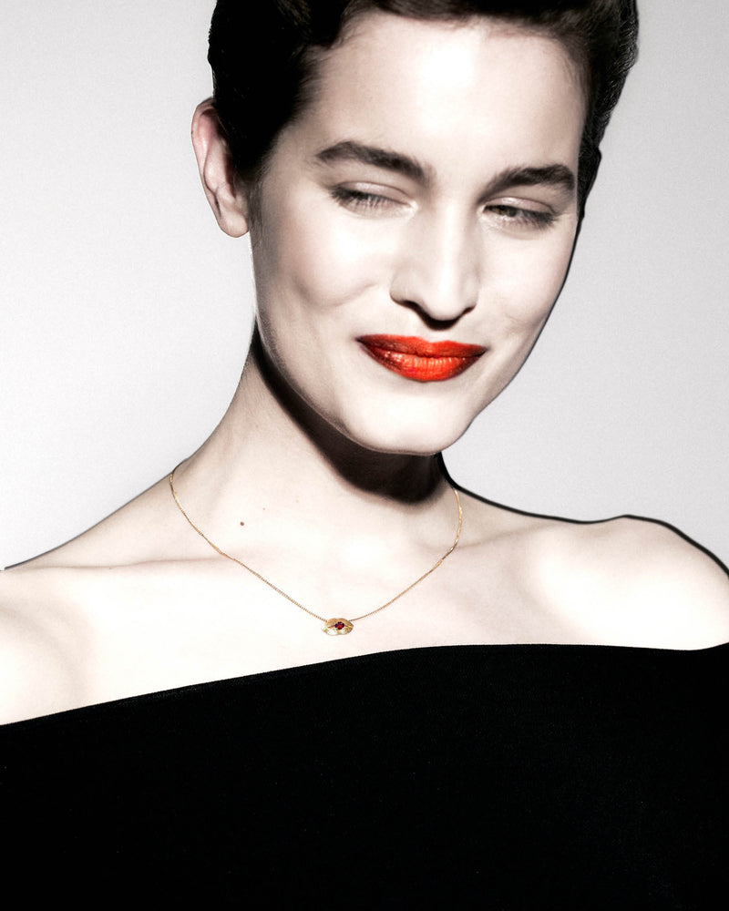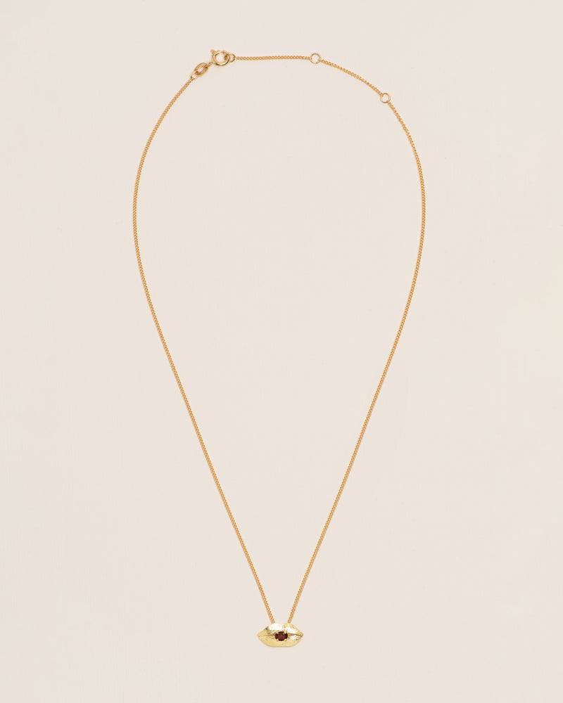 Necklace with mussel pendant and heart-shaped garnet in 18 ct. gold