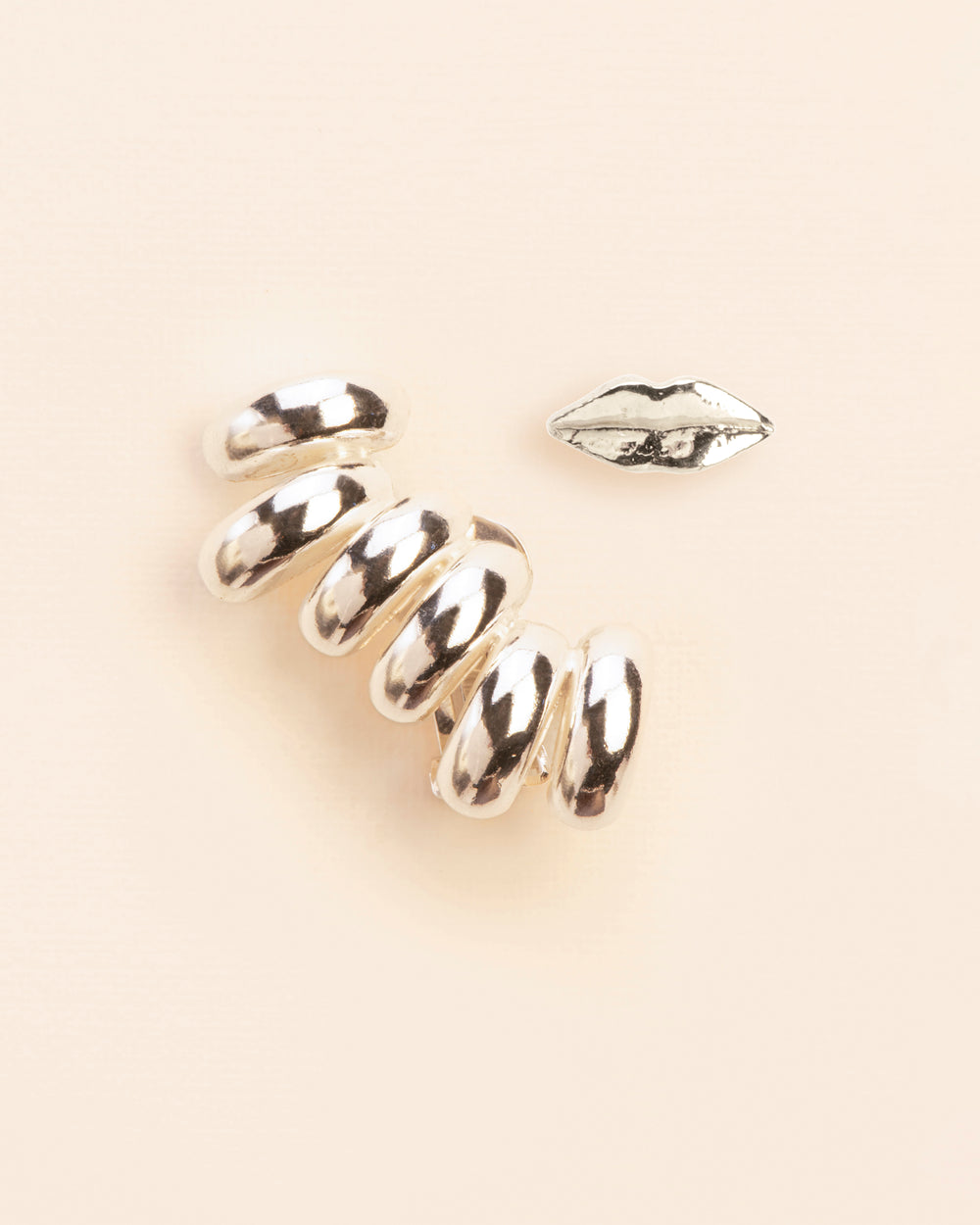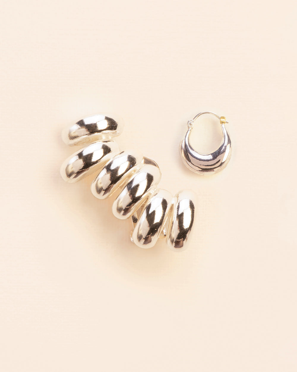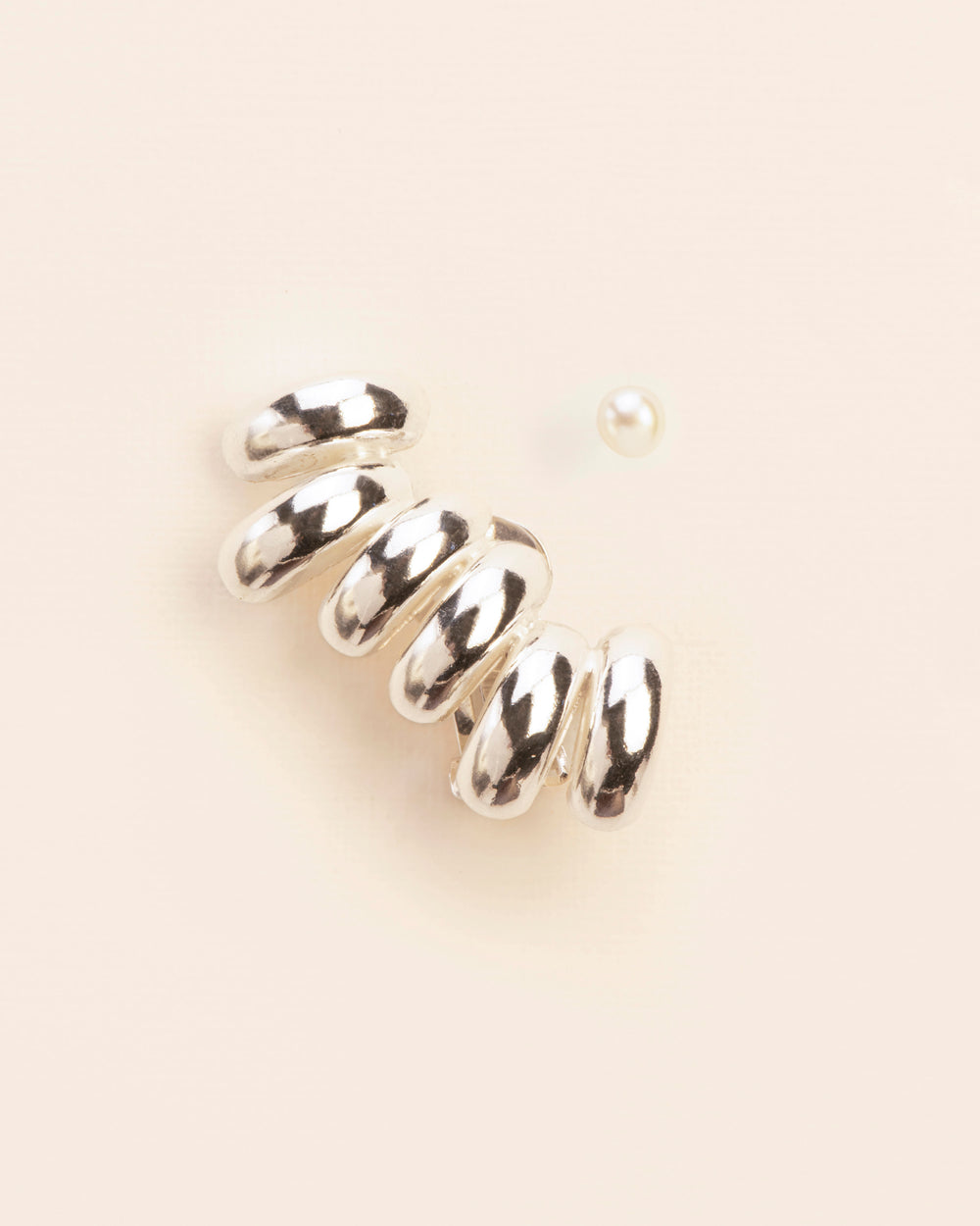 Trio of earrings with signature grigri, pearl and crystal in silver
