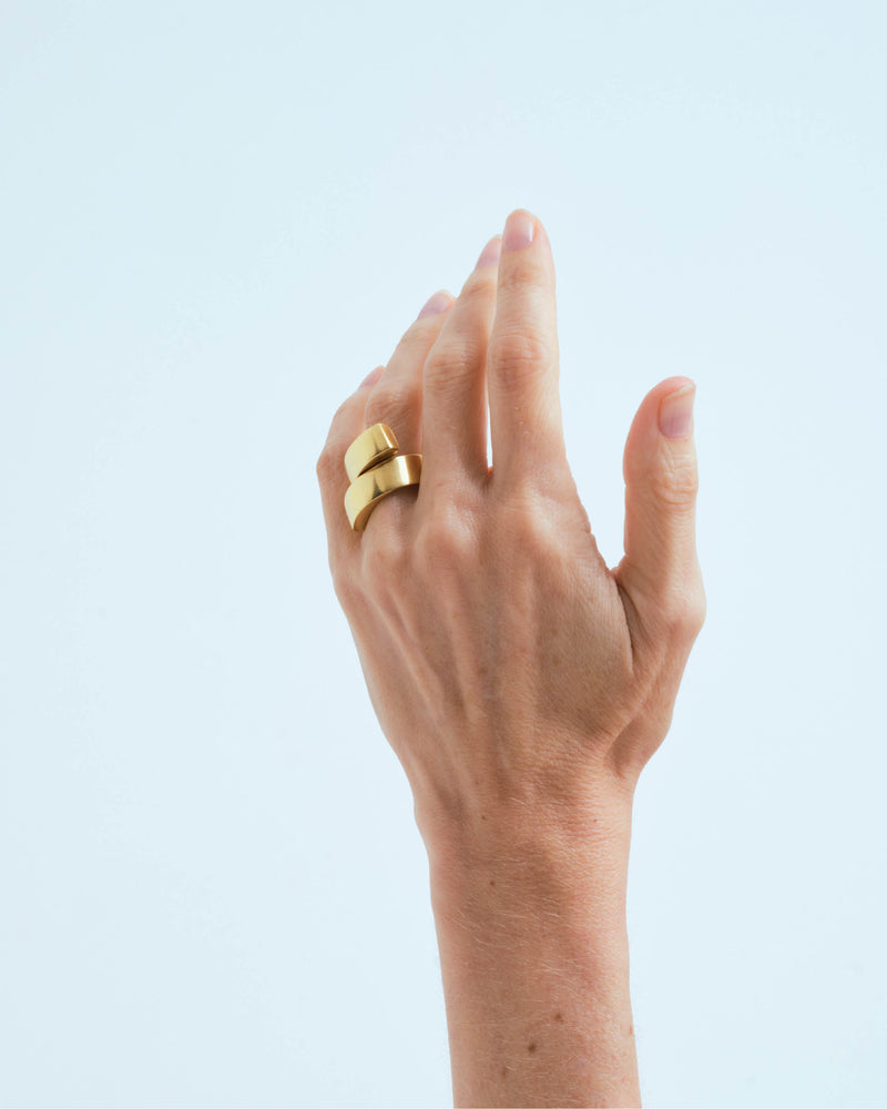 Chunky folded ring from the 'Les Eternelles' collection. The archetypal circular shape of a ring is challenged by an enigmatic force. Born from the secrets of simplicity, this collection consists of icontournables that become a part of you, treasures to have and to hold forever.