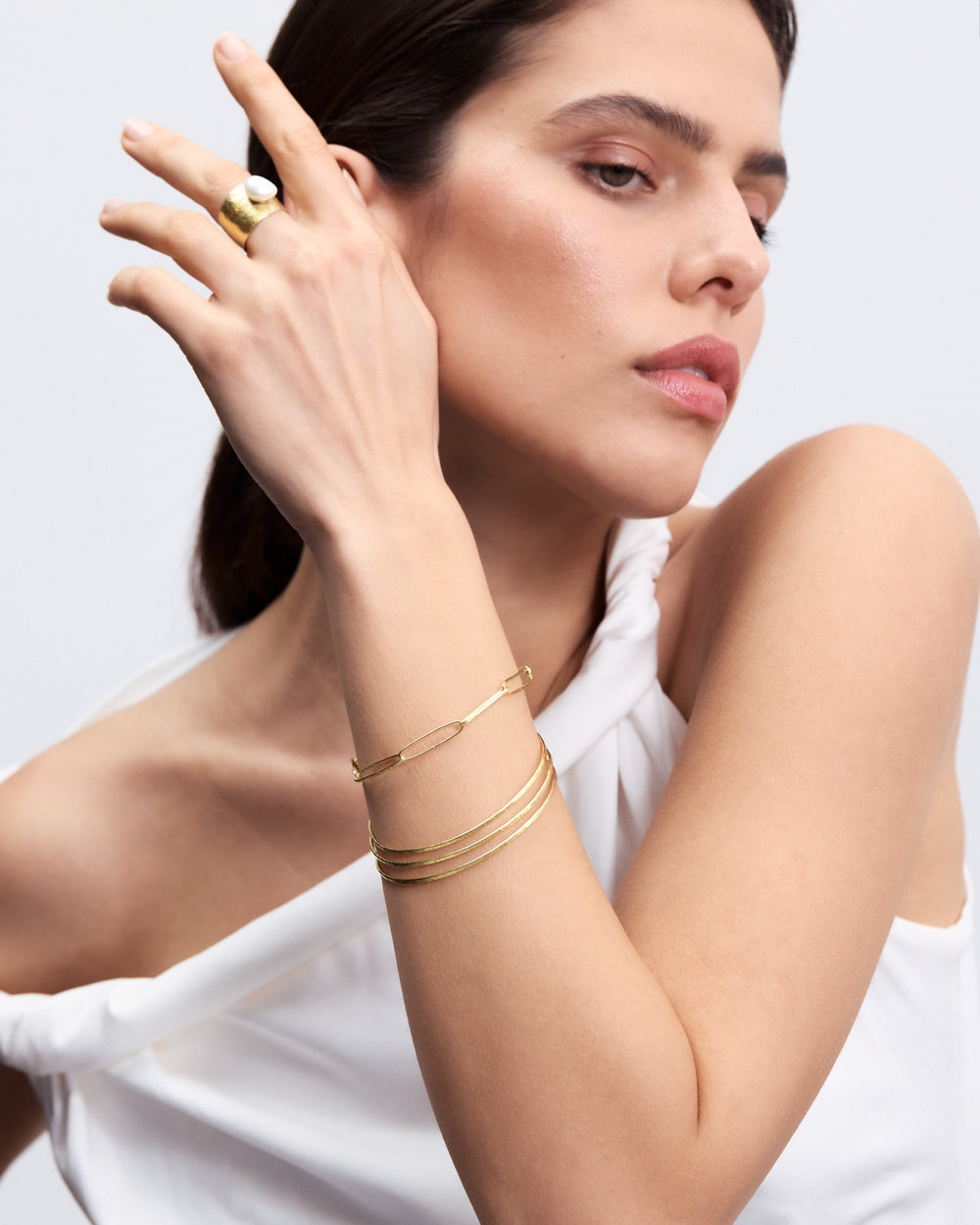 Bracelet exposing the raw beauty of unpolished gold, carefully hammered by hand in our Antwerp atelier. This traditional technique is loud, but the result is subtle in its simplicity. Crafted from Mother Nature’s most cherished gifts, ‘Les Eternelles' are treasures to have and to hold forever.