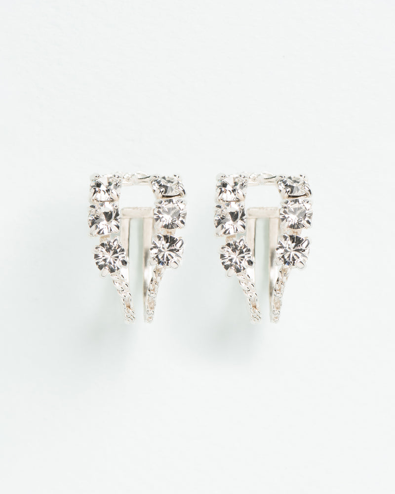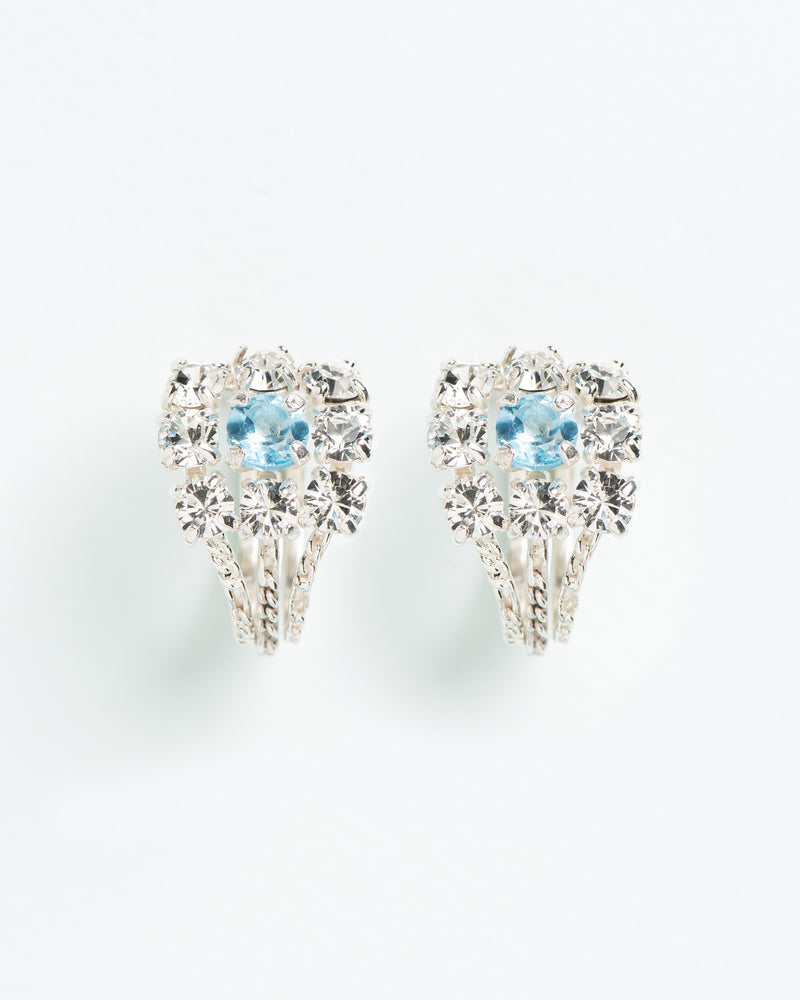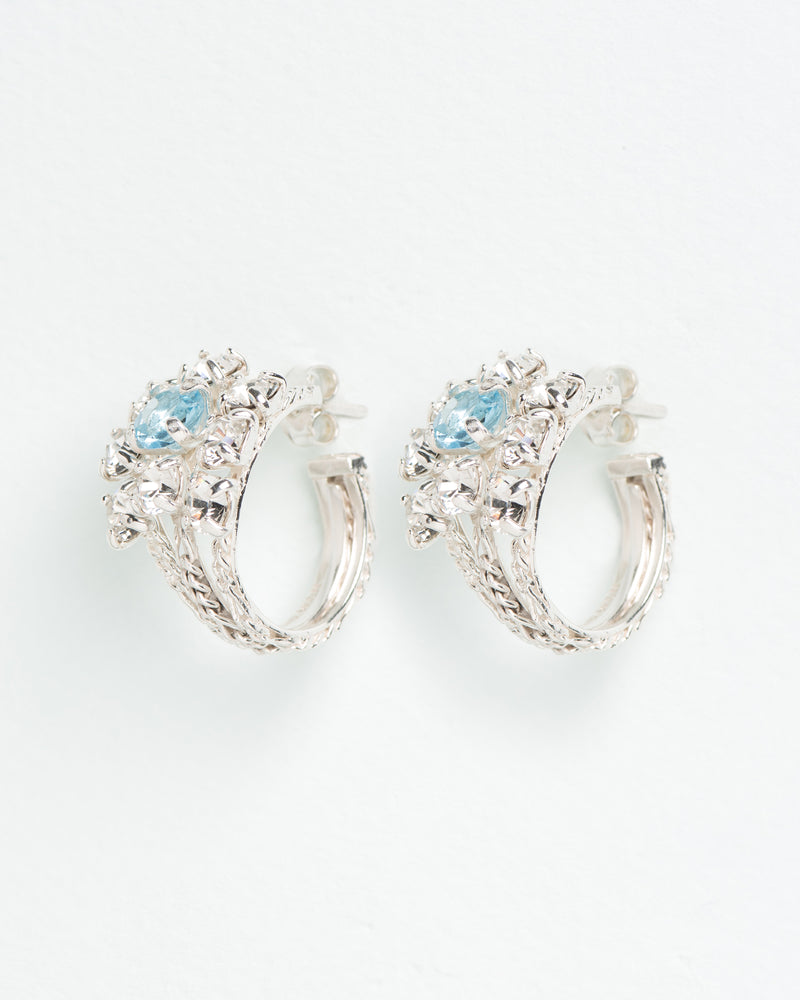 Hoop earrings with aquamarine and detachable clear crystal party jacket