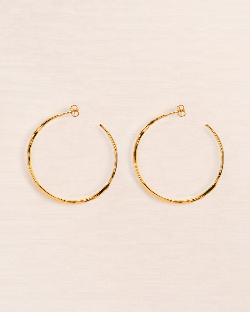 Finding beauty in organic imperfections. In awe of the natural world, the ‘Voyages Naturalistes’ collection tries to grasp the everchanging and turn it into a wearable memory. These hoops are handmade in our Antwerp atelier.