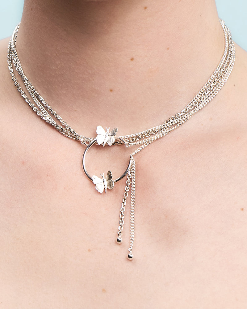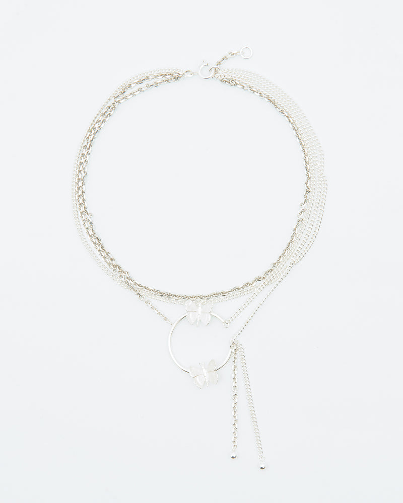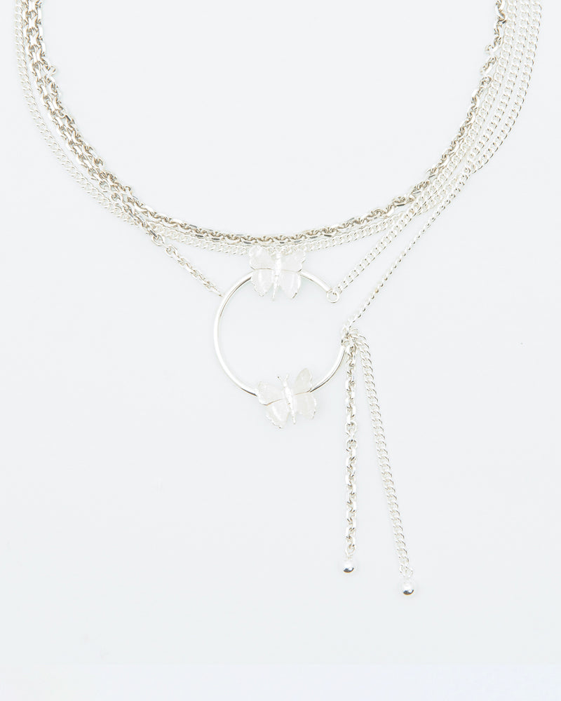 Ethereal and free-spirited, this layered chain necklace with butterflies and dangling spheres is a nostalgic journey back to our carefree millennial 2001 collection.