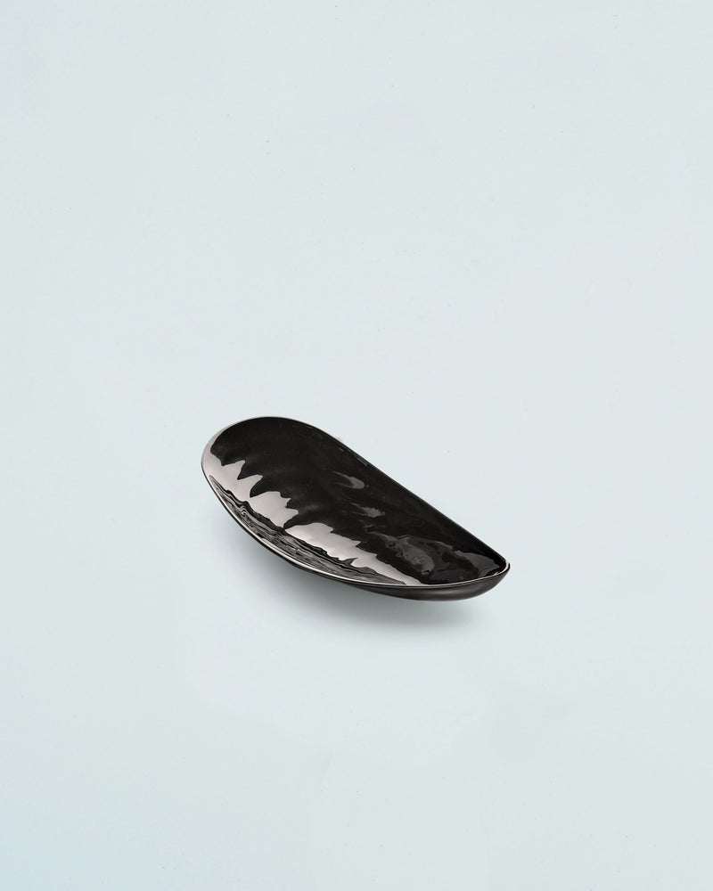 The porcelain Marcel bowls, inspired by Marcel Broodthaers’ Mosselpot, are about as typical Wouters & Hendrix as it gets. Drawn by the poetry of ordinary objects in unfamiliar contexts, Wouters & Hendrix has been playing around with mussel-shaped charms in their La Fête des Bêtes collection. This stronghold of the jewellery collection now becomes a lustrous black porcelain bowl called “Marcel” (after Broodthaers).
