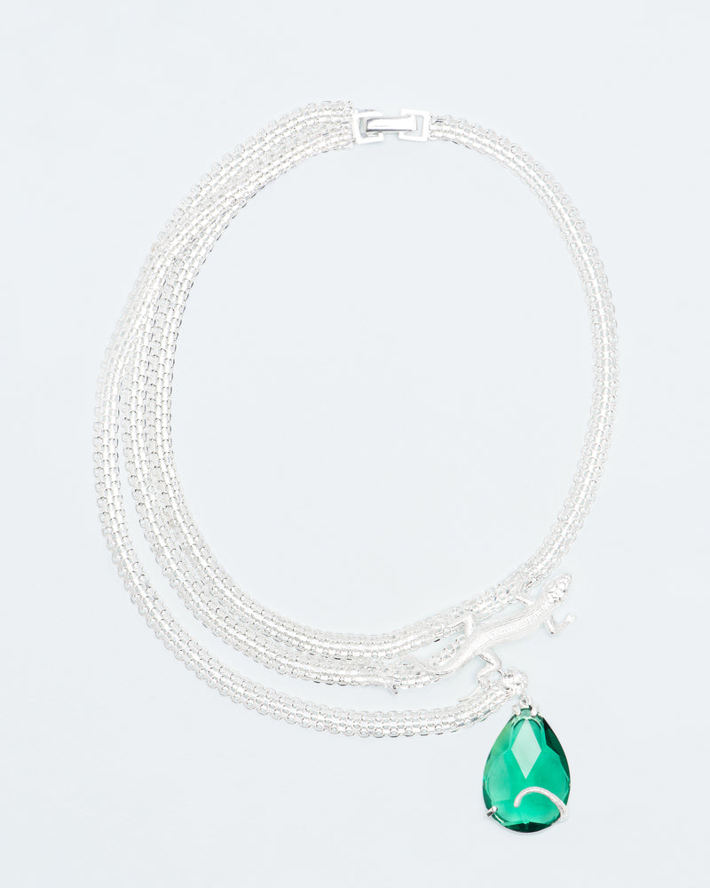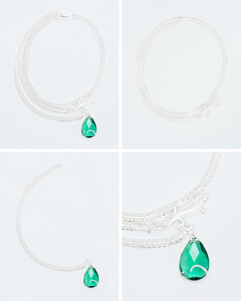 Multifunctional chain necklace with salamander and emerald crystal drop