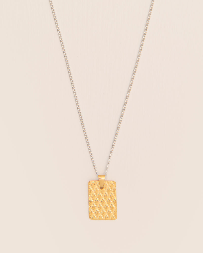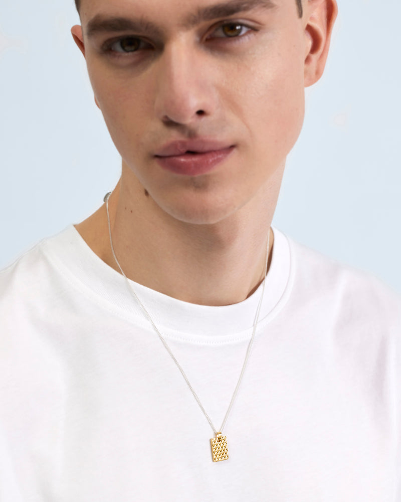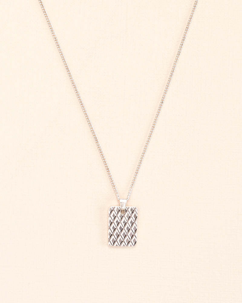 ‘Midnight Children’ is the epitome of what punk exemplifies in the world of Wouters & Hendrix. Inspired by the poetry of nightlife, the collection blurs the boundaries between chunky and delicate, between fancy and ferocious, making it a companion on your every adventure from day to night. In this 'Midnight Children' necklace and a textured name plates steps into the limelight as a precious component. The silver finish echoes black and white scenes after dark. Exuding a unique artistry, every Wouters & Hendrix piece is handmade by a team of goldsmiths in our Antwerp atelier.