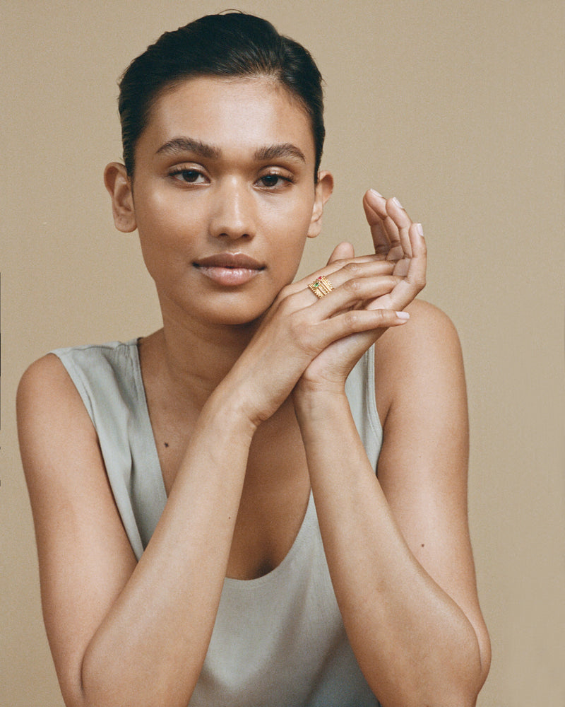 Set of seven stacked 'Chapters' rings in 18 ct. gold