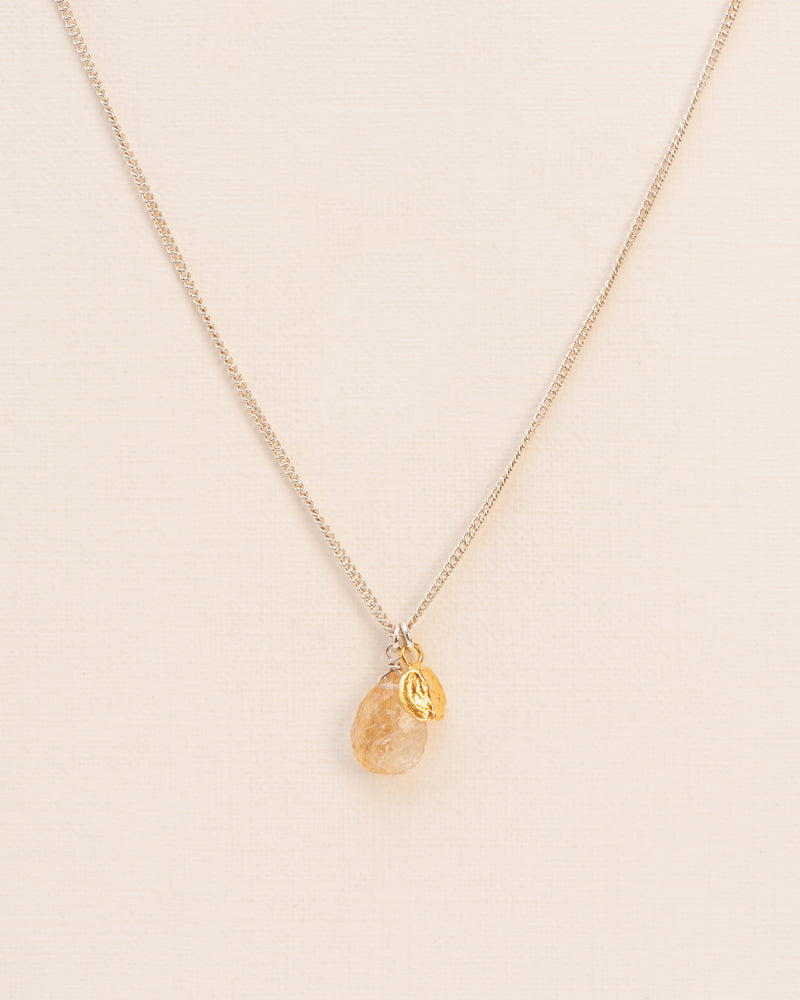 Necklace with rutilated quartz and mustard seed in silver