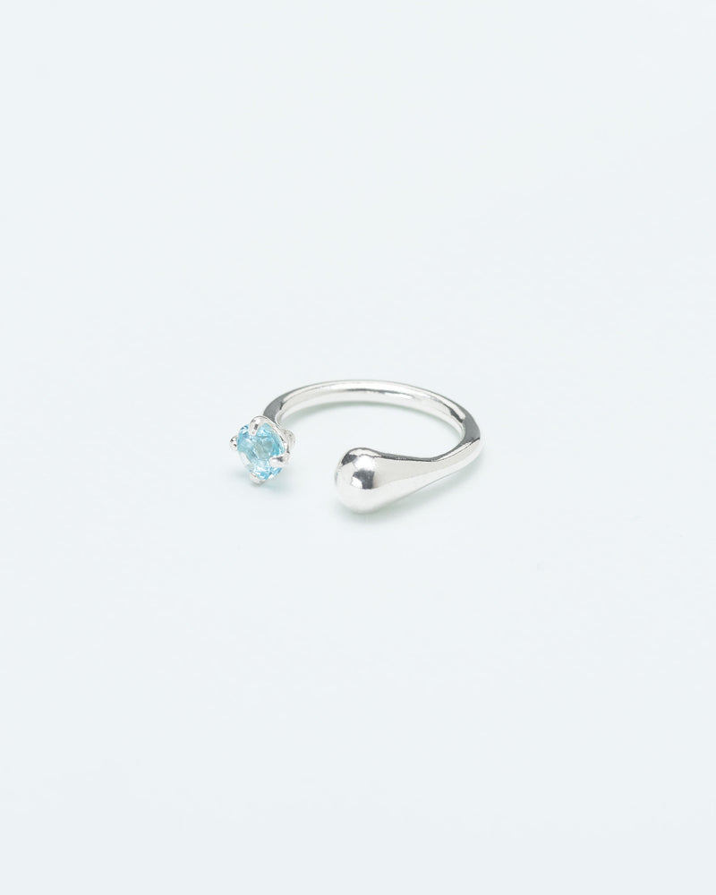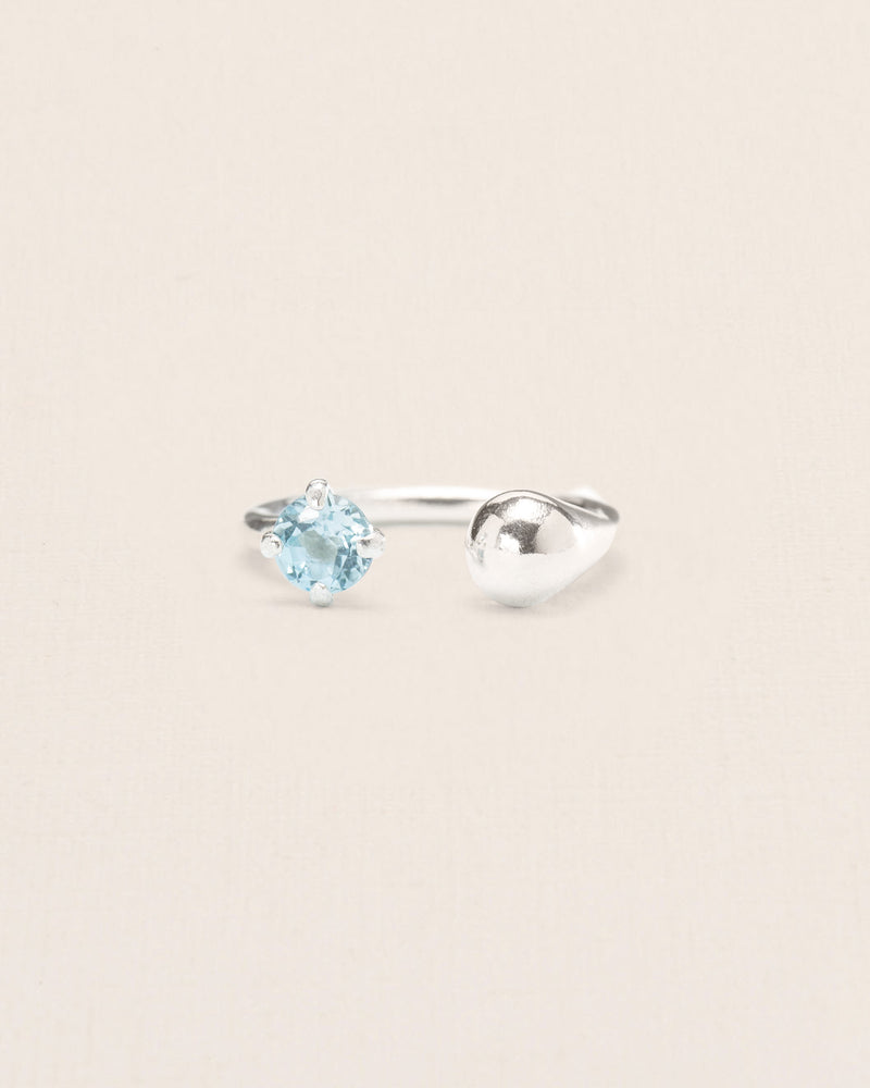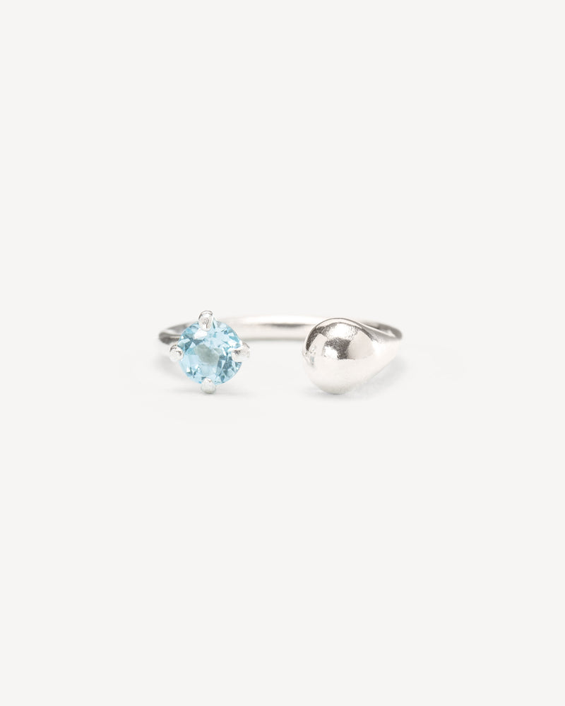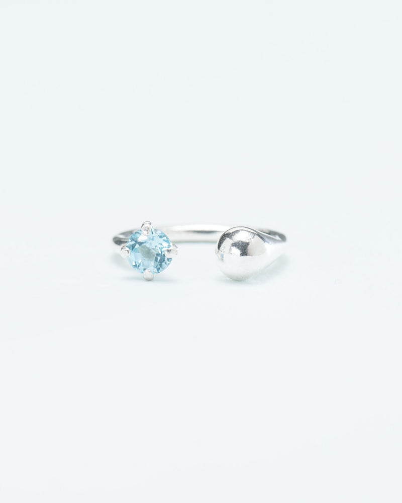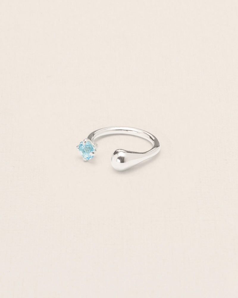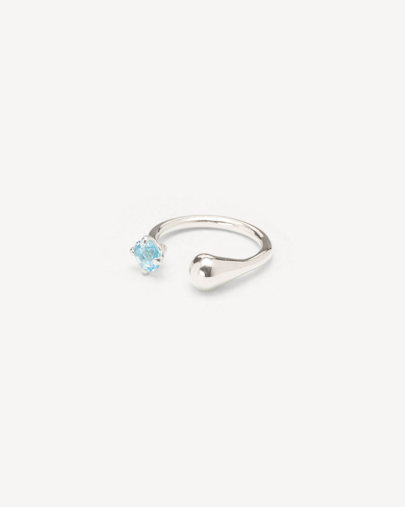 Asymmetric droplet ring with aquamarine crystal in silver