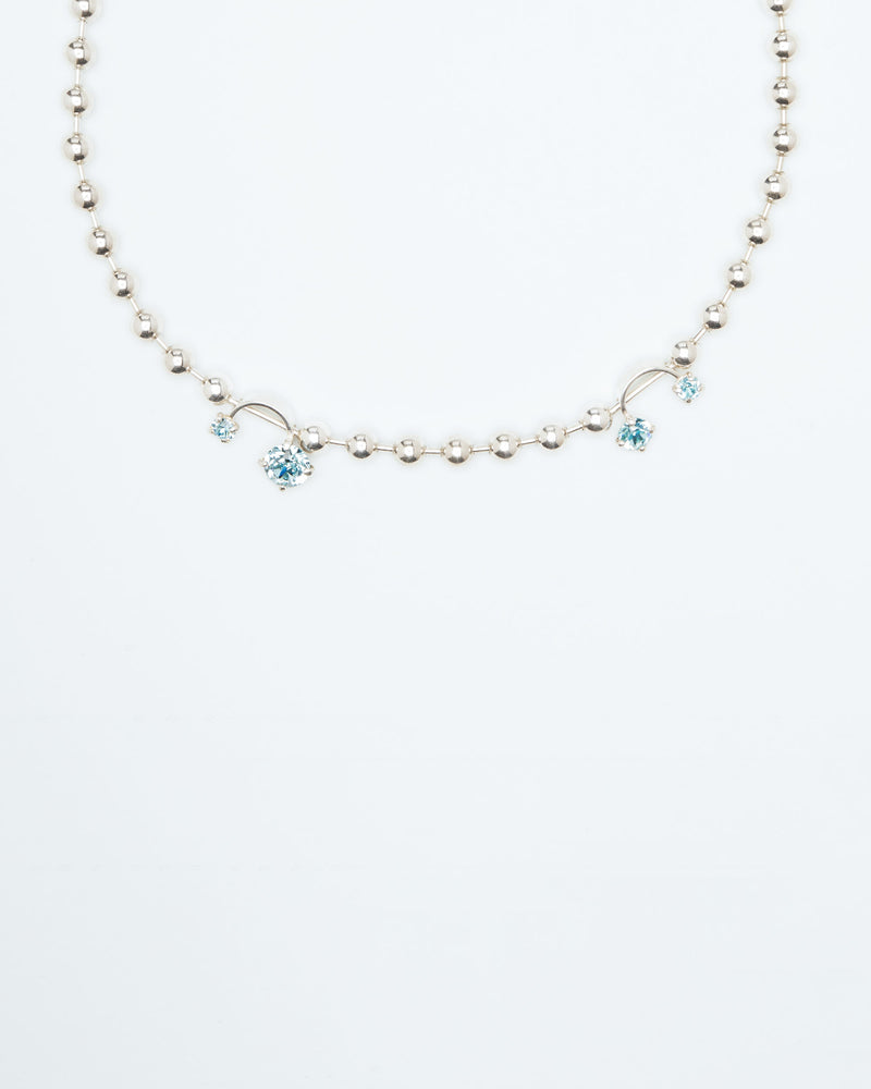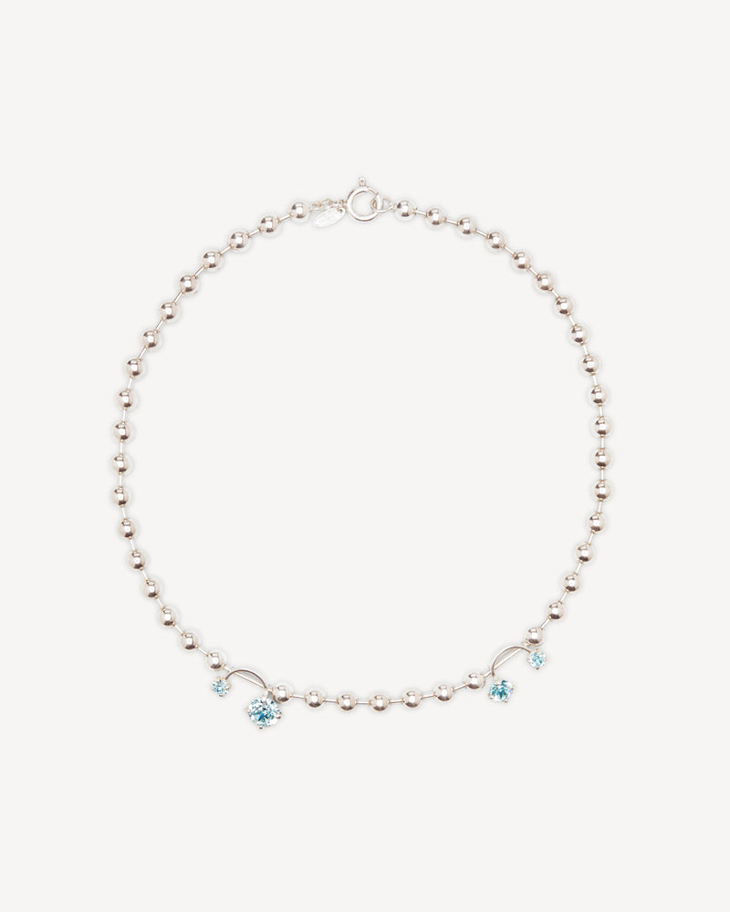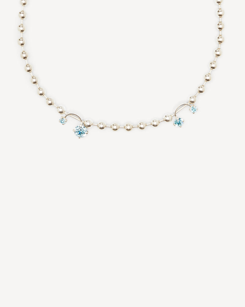 Playful and vivid, this ball necklace is characterised by its aquamarine crystals, mimicking the water of life. Rewritten for far longer than a single spring–summer fairytale, the Rewriting the Tales collection is meant to be worn often, lived in, and to become a page in everyone’s personal story. Carefully handcrafted in our Antwerp atelier, each piece is designed to be adorned and adored.