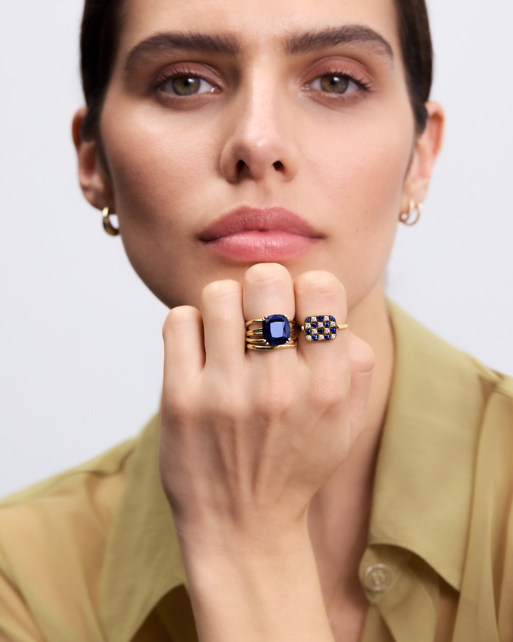 Philidor ring with sapphire and diamond rotating chessboard in 18 ct. gold