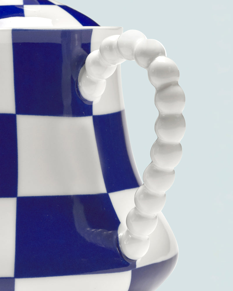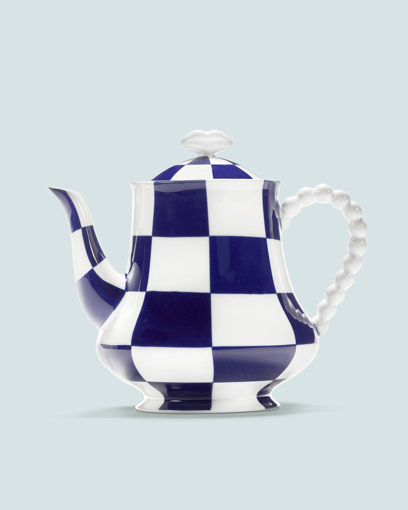Inspired by the iconic chess pattern that ever so often slips into Wouters & Hendrix jewellery, this La Fête des Bêtes teapot is draped in a lapis lazuli blue motif as a not-so-subtle ode to the art of chess. Thankfully though, the only real move here is deciding whether or not to reach for another cup of tea.