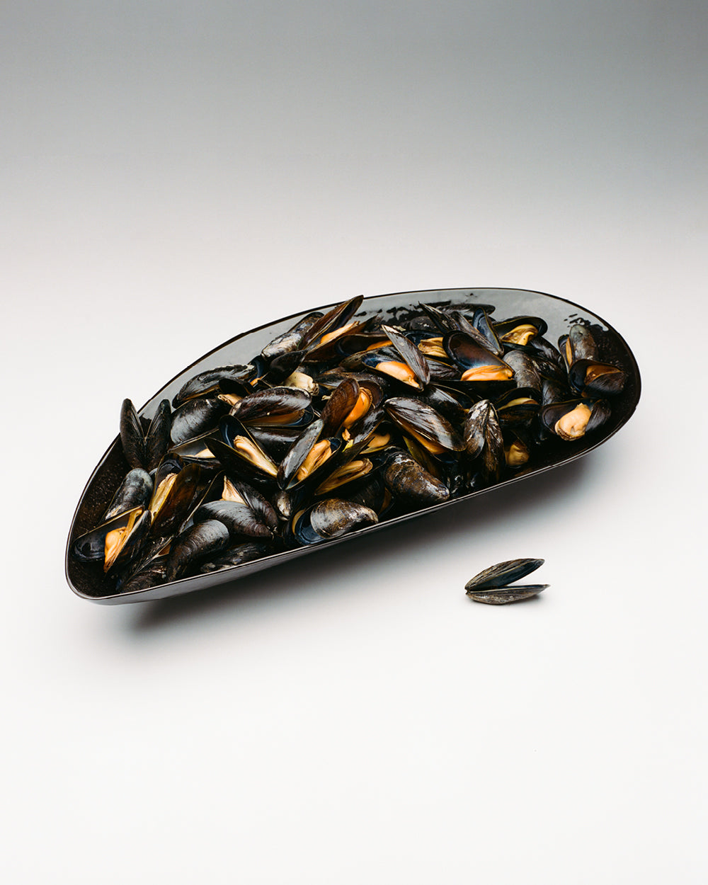 The porcelain Marcel bowls, inspired by Marcel Broodthaers’ Mosselpot, are about as typical Wouters & Hendrix as it gets. Drawn by the poetry of ordinary objects in unfamiliar contexts, Wouters & Hendrix has been playing around with mussel-shaped charms in their La Fête des Bêtes collection. This stronghold of the jewellery collection now becomes a lustrous black porcelain bowl called “Marcel” (after Broodthaers).