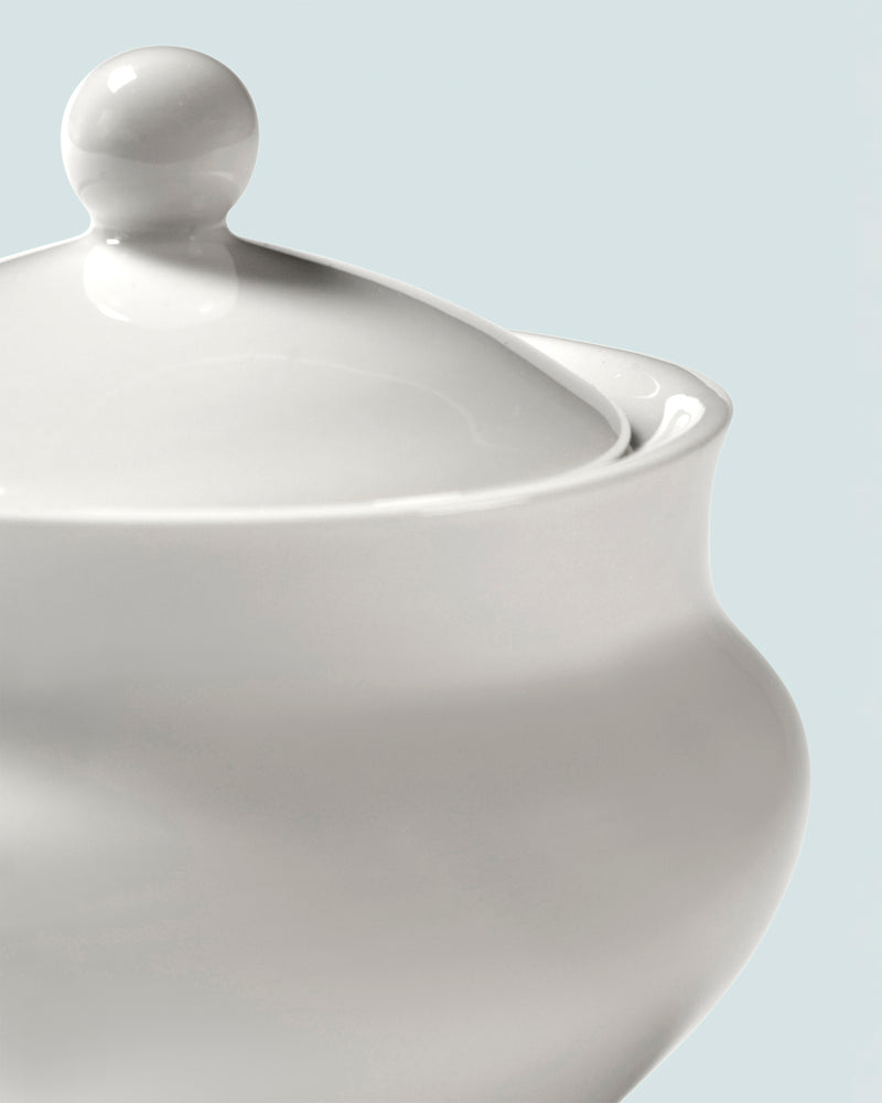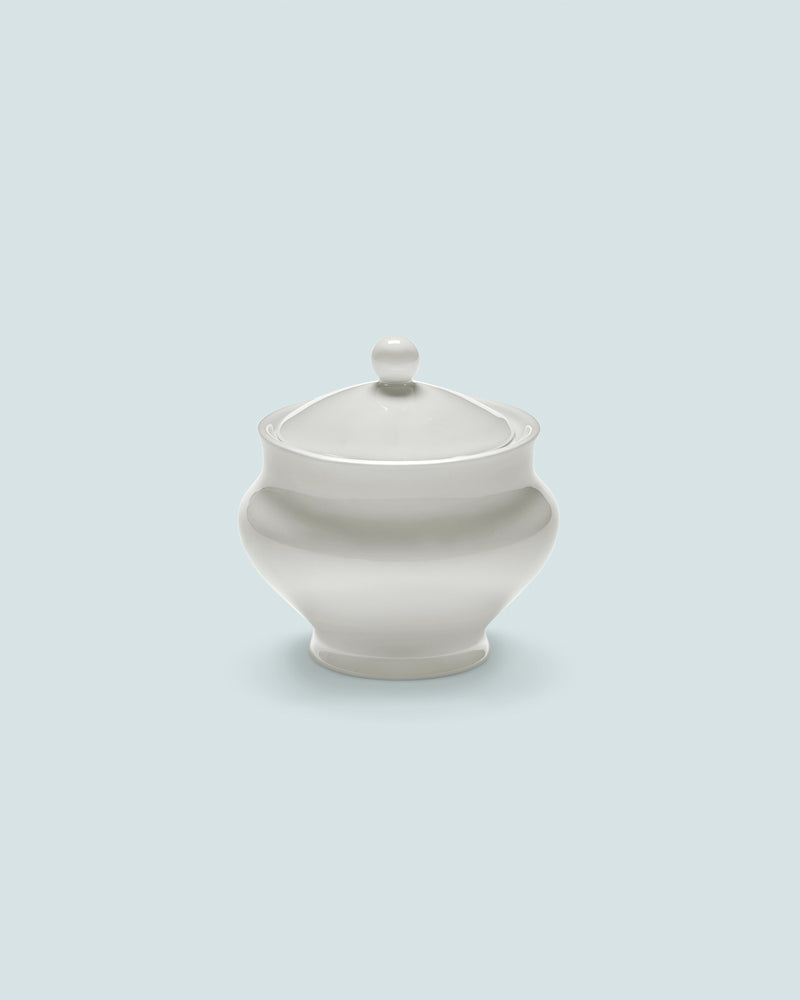 At first glance, this Perle Fine sugar bowl in radiant white porcelain appears almost austere. With its rounded silhouette and pristine finish, it mirrors the understated elegance of the set. Combined with the other elements, it completes a high tea ensemble so delightfully refined that one imagines even the Mad Hatter would have approved.