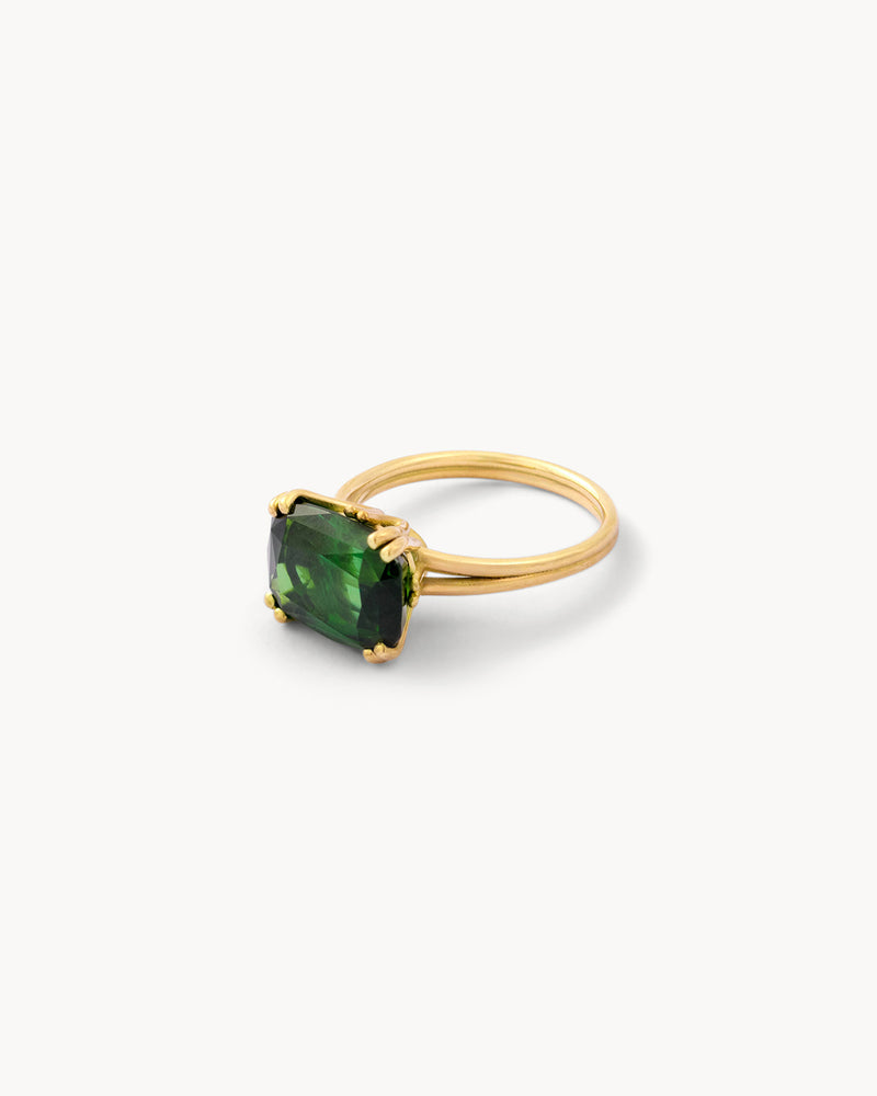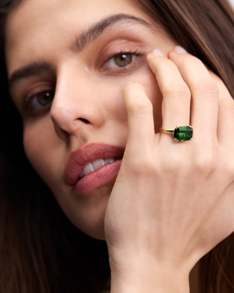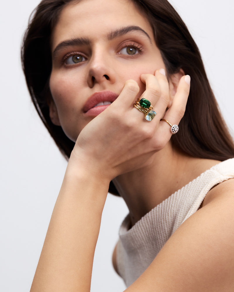 A cocktail ring is a sculptural statement. Worn not merely for the occasion, but as the occasion. Purposefully designed to let its centre stone speak for itself, this Wouters & Hendrix version is crowned with a cushion-cut green tourmaline. A vivid gem infused with the life force of nature, green tourmaline symbolises growth, compassion, and healing of what has fallen out of balance.