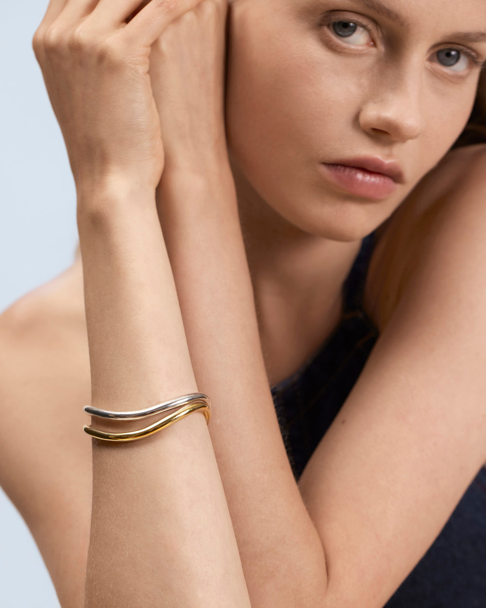 The bracelets pictured are the Hammered bracelet in silver and the Fine hammered bracelet in silver.