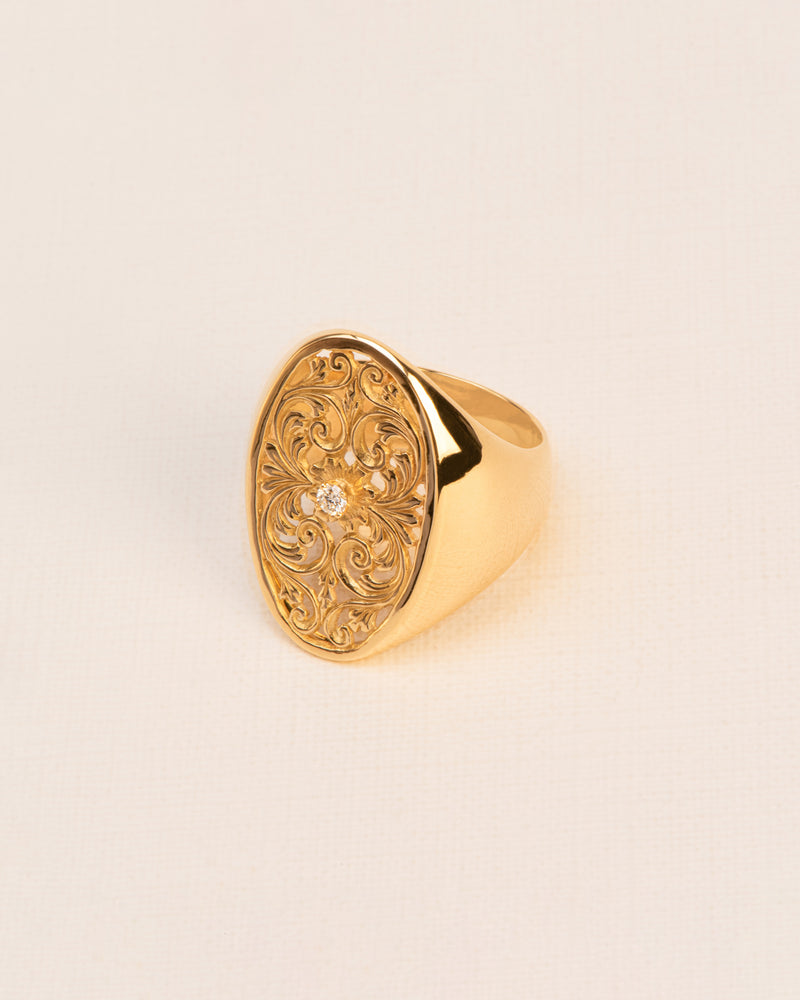 In the 'La Belle Héritière' collection, Wouters & Hendrix explores archetypes of heirloom pieces. Reminiscent of antique jewellery motifs, this ring combines filigree with a subtle diamond for an unexpected take on tradition. Exuding unique artistry, every Wouters & Hendrix piece is handmade by a team of goldsmiths in our Antwerp atelier.