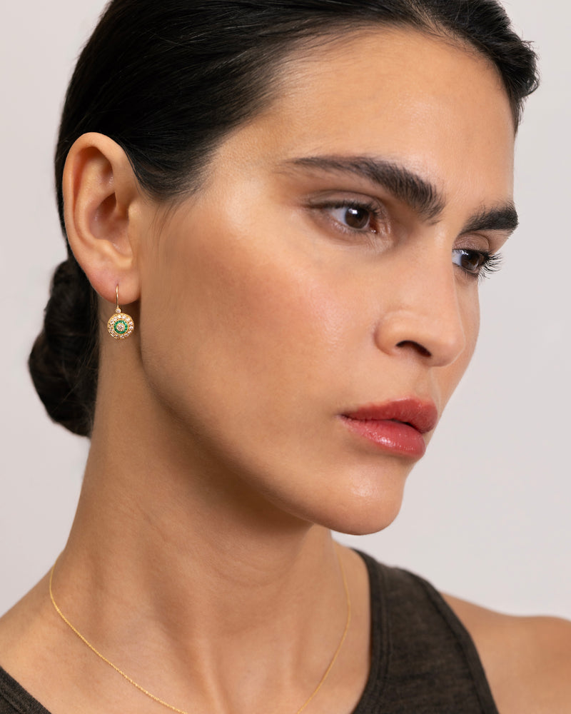 Leverback earrings with emerald and diamond rosas in 18 ct. gold