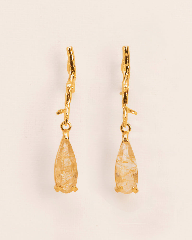 Branches with a drop of rutilated quartz. These earrings with rutilated quartz from the 'Voyages Naturalistes' collection may very in colour, no two jewels are the same. Every Wouters & Hendrix piece is handmade by a team of goldsmiths in our Antwerp atelier.
