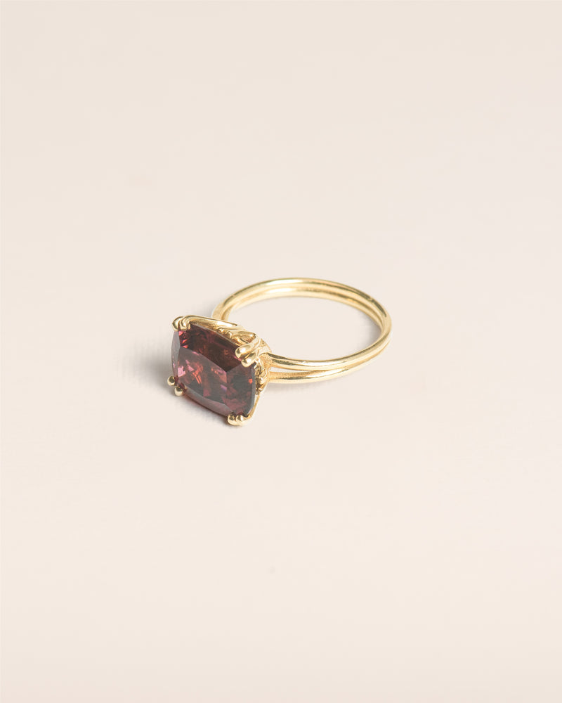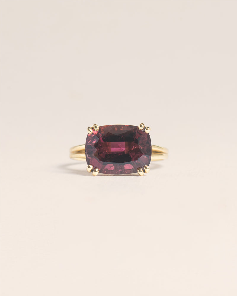 A cocktail ring is a sculptural statement. Worn not merely for the occasion, but as the occasion. Purposefully designed to let its centre stone speak for itself, this Wouters & Hendrix version is crowned with a cushion-cut pink tourmaline, a gem unearthed from the rich soils of Nigeria. Said to be a gift from a love-struck goddess to her mortal beloved, pink tourmaline was born from tears of longing that fell to earth and crystallised into emotion made tangible. A talisman of passion, tenderness, and protective grace.