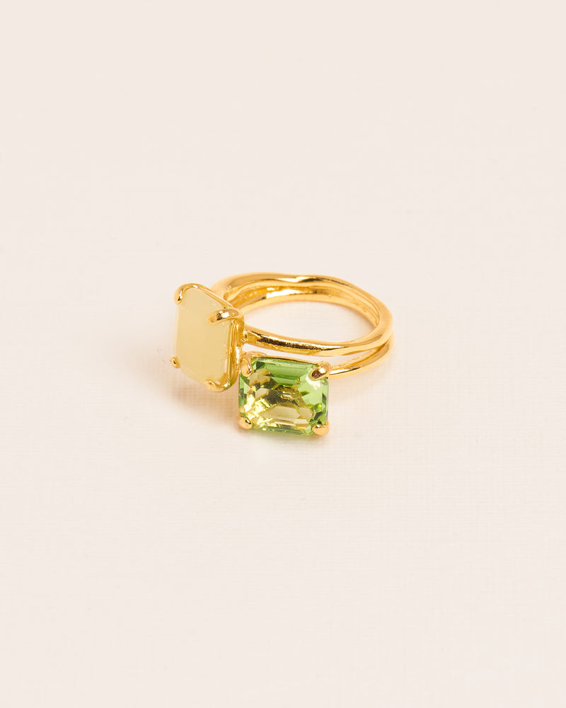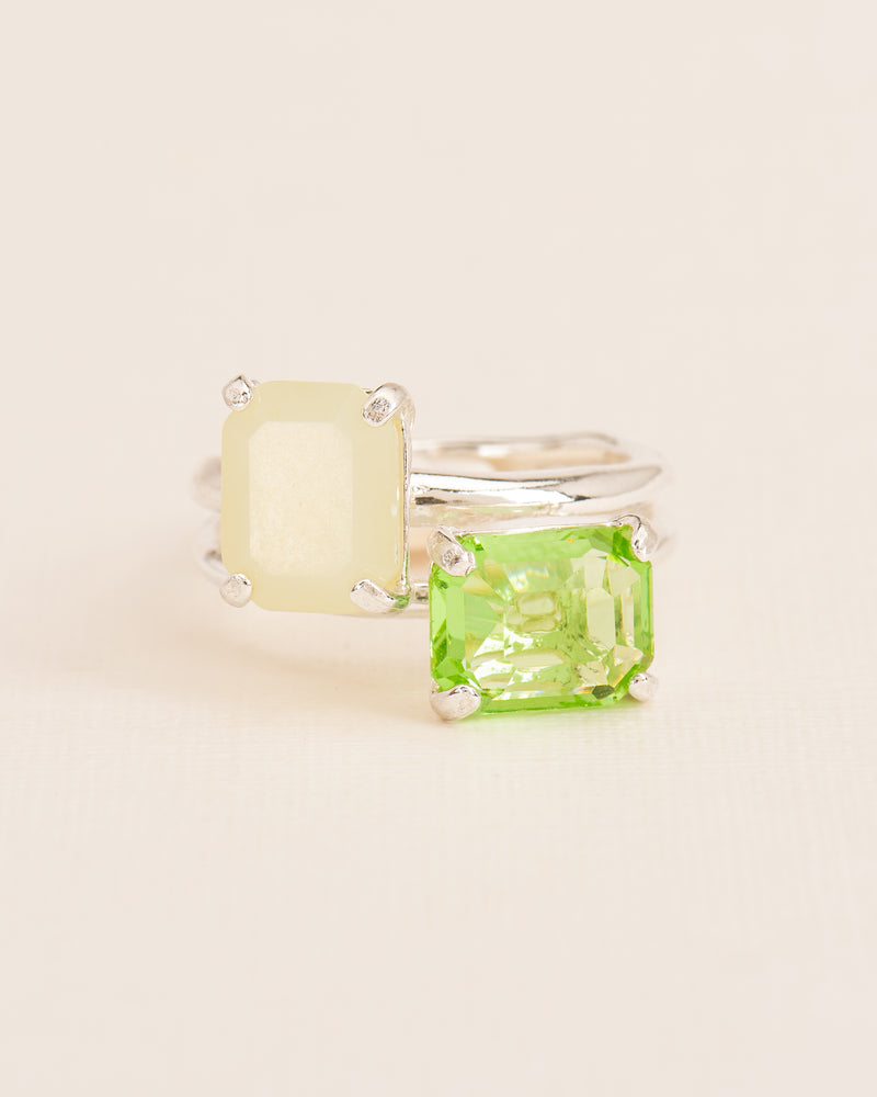 Wouters & Hendrix love to play with contrasts and frequently do so in their work. The fanciful form of the rings and setting in this double ring contrasts with the vibrant peridot crystal and milky green serpentine. Associated with vitality and renewal, the peridot crystal radiates a bright, verdant energy while the serpentine soothes the whole with it’s opaque appearance. Incontournables that become a part of you, the designs from the ‘Les Eternelles’ collection are treasures to have and to hold forever. Exuding a unique artistry, every Wouters & Hendrix piece is handmade by a team of goldsmiths in our Antwerp atelier.