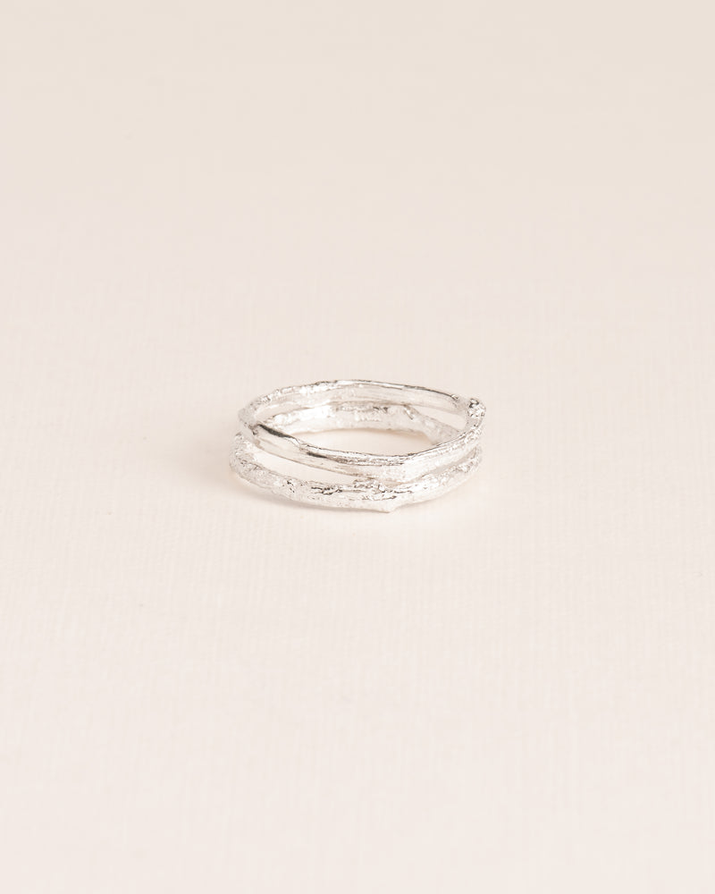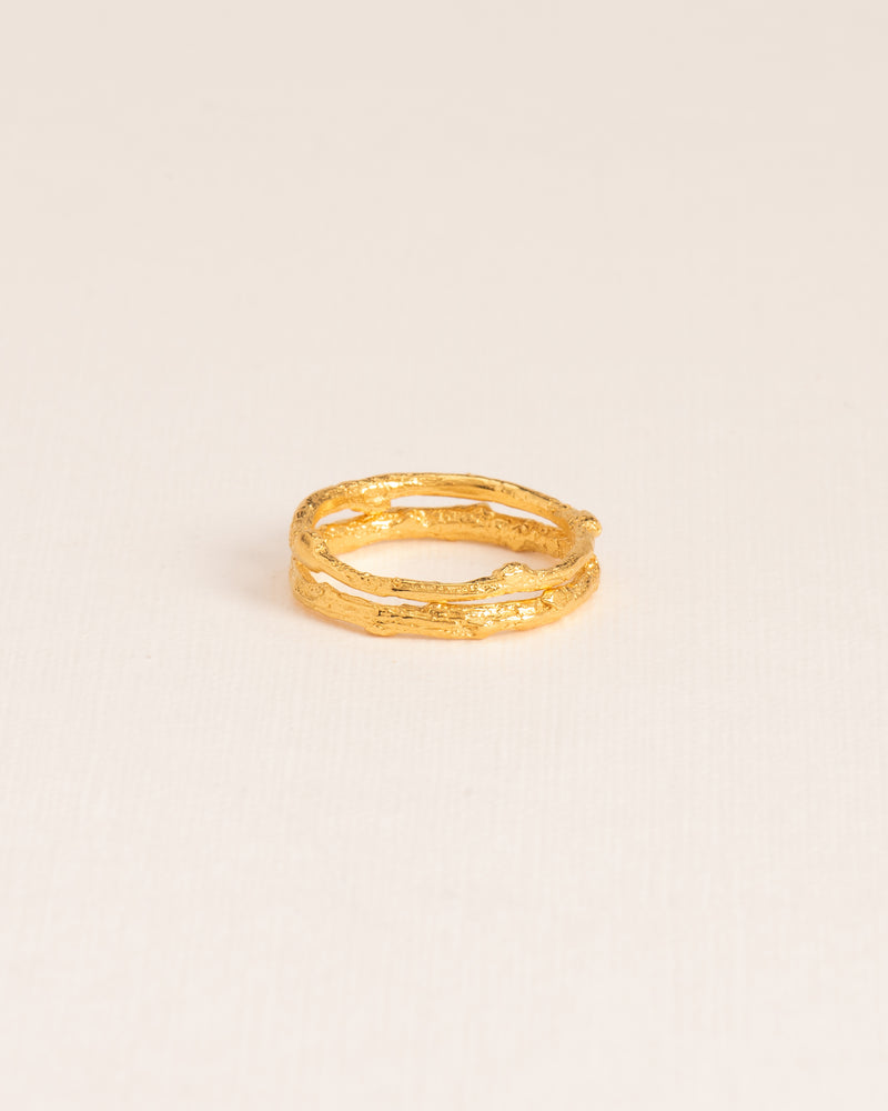 Trying to capture nature's perfect imperfections, this duo of branch-textured rings from the 'Voyage Naturalistes' collection draws inspiration from the infinite beauty of the natural world. This collection tries to grasp the everchanging and turn it into a wearable memory. Exuding a unique artistry, every Wouters & Hendrix jewel is handmade by a team of goldsmiths in our Antwerp atelier.