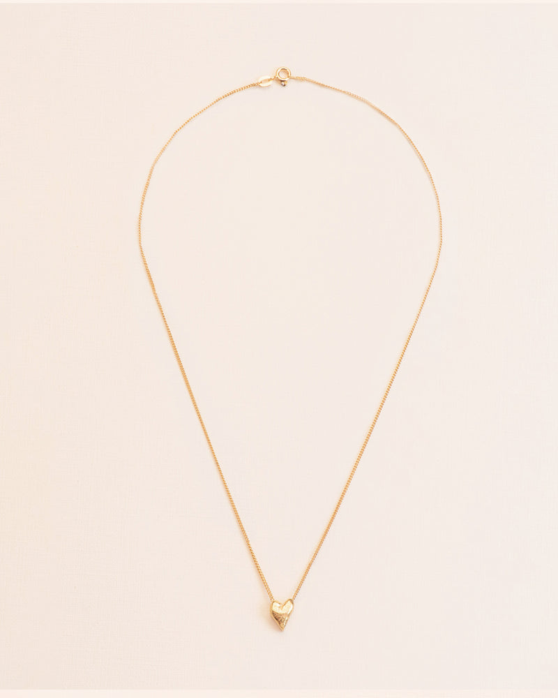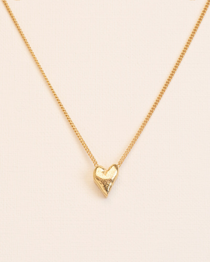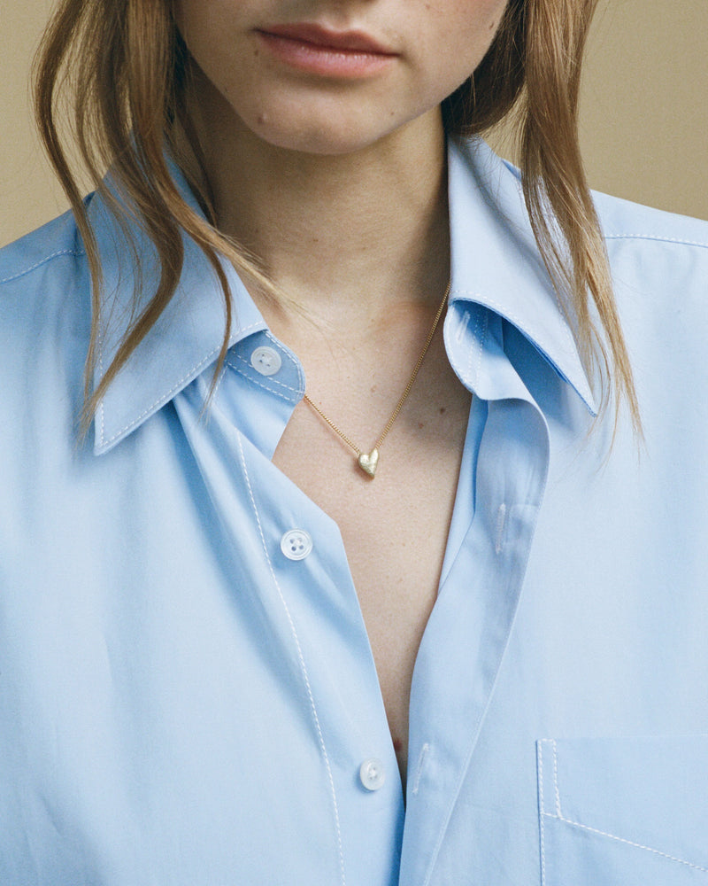 Wouters & Hendrix describe themselves as ‘romantic fools’ because of their penchant for symbols and jewellery referencing love and The Tell-Tale Heart collection is all about that. The necklace with a solid 18 ct. gold heart is heavy in terms of weight but subtle and refined in appearance. The heart shape is universal and timeless, it embodies emotionality and is in that sense perhaps the ultimate shape for a piece of jewellery, for jewellery’s sentimental value is often greater than its intrinsic value.The heart was hammered entirely by hand in Wouters & Hendrix’ studio in Antwerp. The technique is loud, but the pieces of jewellery are anything but. Their pure forms reveal the raw beauty of 18 ct. gold.