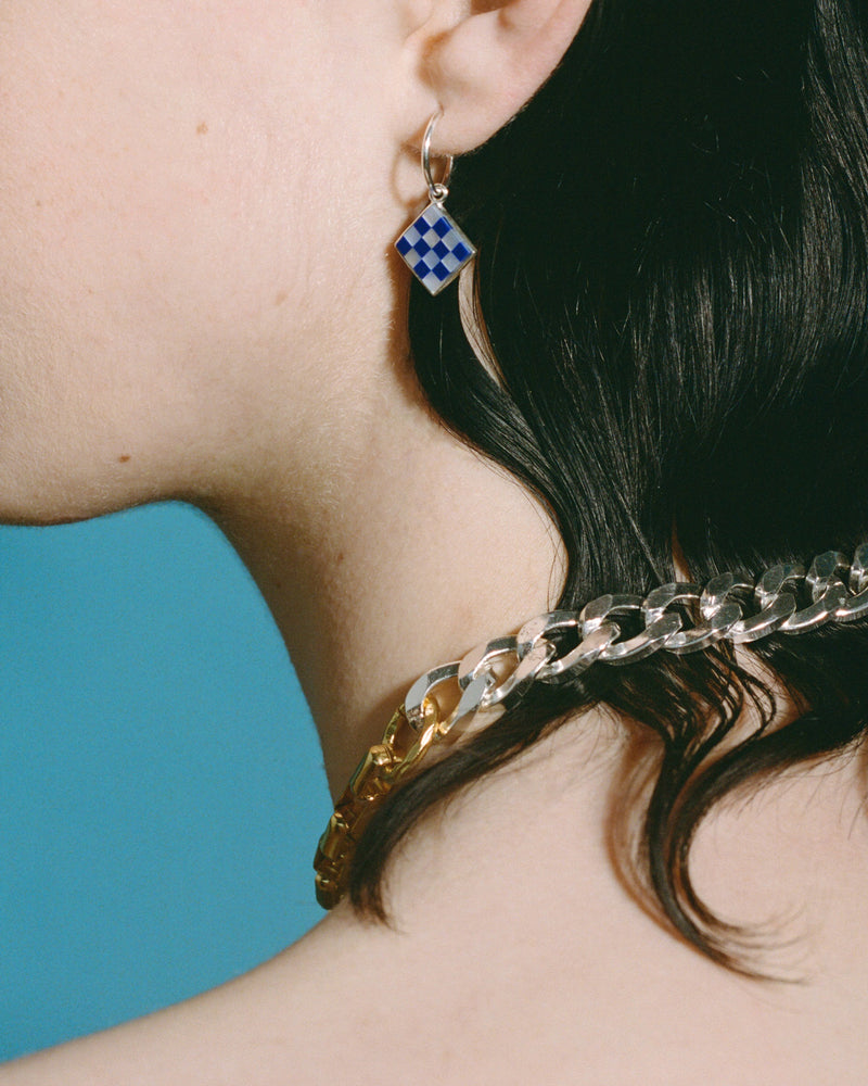 According to the traditional rules of jewellery making, colour is added by means of gems. In the 'La Fêtes des Bêtes' collection it is chess inlay work that brings colour to the jewel. A meticulous work inspired by an old technique often used to decorate cufflinks. Subtle rebels with a love for surrealism, we are drawn to unexpected combinations of materials and techniques, gently adorning your body with tales in silver and gold.