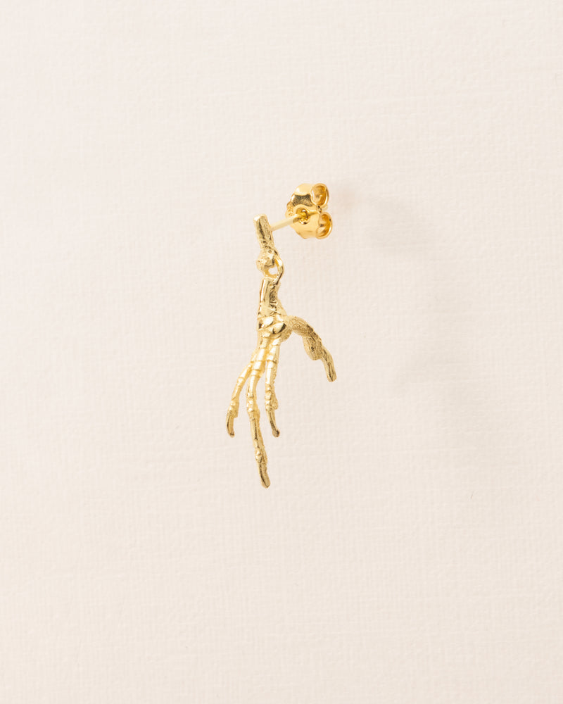 Our signature bird foot ‘Grigri’ is a true Wouters & Hendrix icon. Still, we’re not quite sure if it’s a magpie’s or a crow’s foot. We don’t know, and it probably doesn’t matter, because all birds fascinate us. Delicate yet powerful, this single stud earring is bound to catch the eye and maybe, just maybe, a bit of luck too.