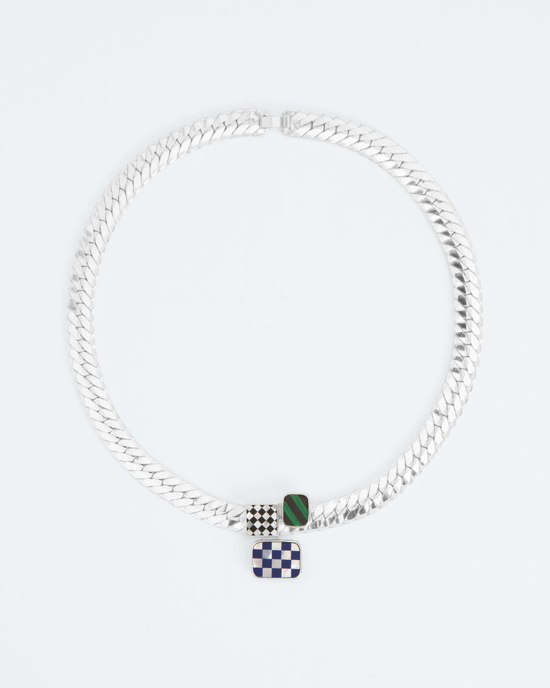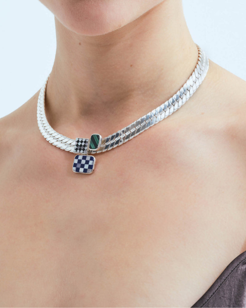 Statement chain necklace with composition of three mosaics