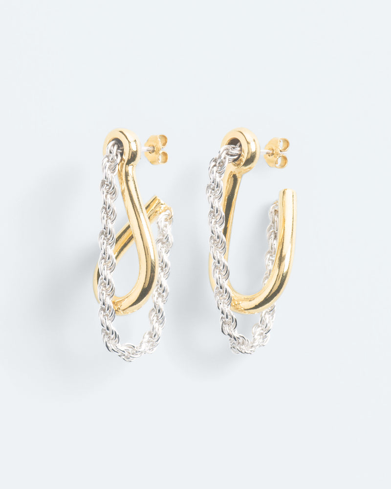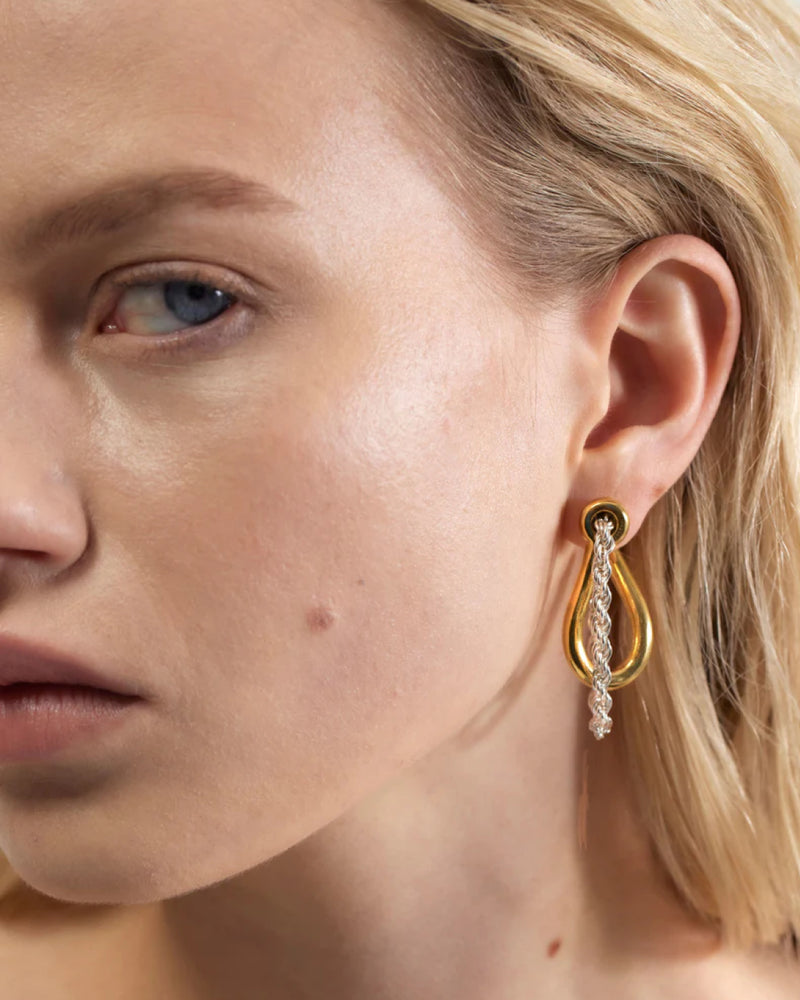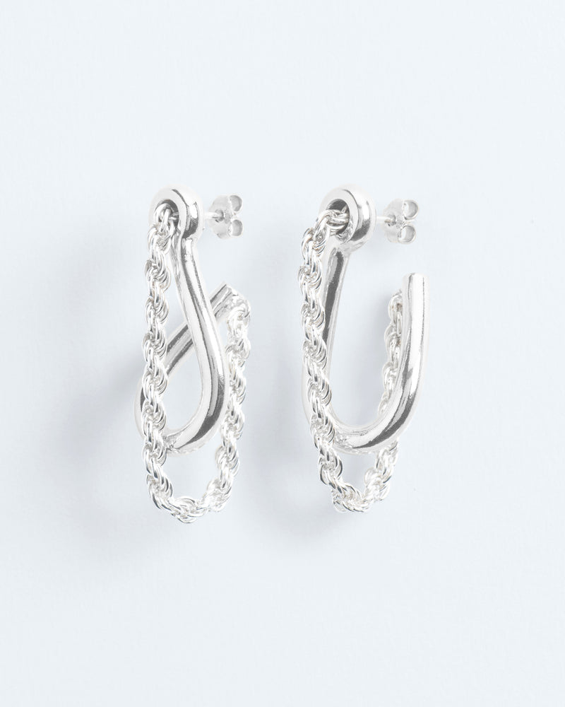 Caught between strength and sentiment, these statement stud earrings with dangling rope chain reinterpret the classic mariner's lock—a symbol of resilience, trust, and unbreakable bonds. A nod to those who navigate life’s tides with grit and grace. Handmade by a team of goldsmiths in our Antwerp atelier, the 'No Mom, it’s not just a phase'-collection captures the essence of the sailor’s journey—the call of the wild waves, the lure of faraway harbours, the quiet pull of home. Tough as rope, yet tender at heart—each piece tells a tale of adventure, longing, and artistry, in true Wouters & Hendrix fashion.