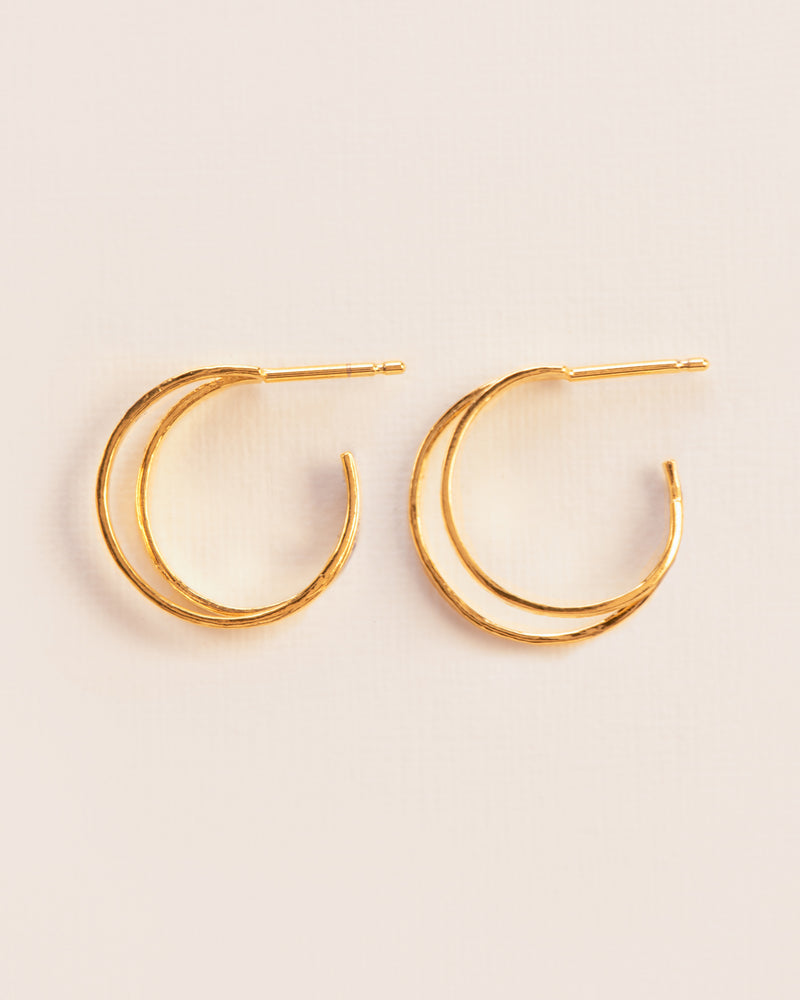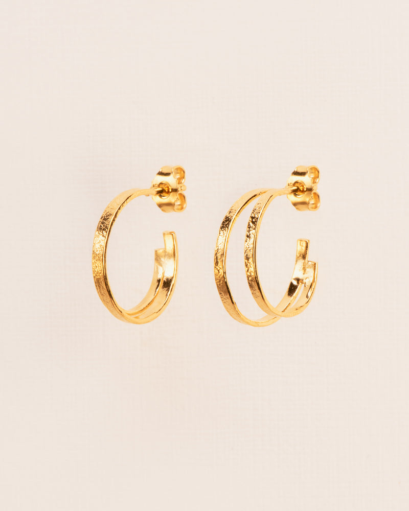 These hoop earrings with a doubled hoop are a contemporary twist on a timeless classic. The hoops are hammered by hand in our Antwerp atelier. This traditional technique is loud, but the result is subtle in its simplicity. Exposing the intrinsic beauty of the material, 'Les Eternelles' are treasures to have and to hold forever.