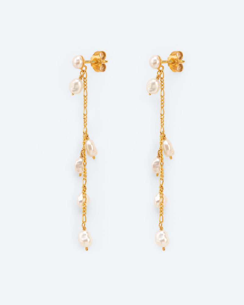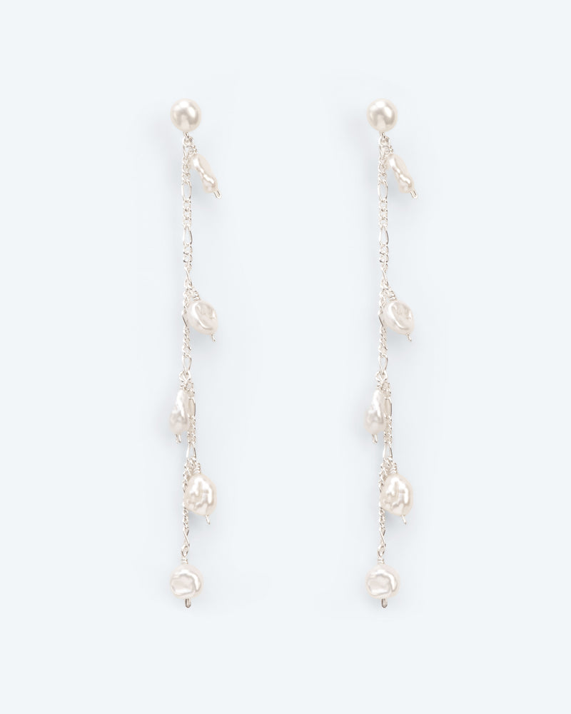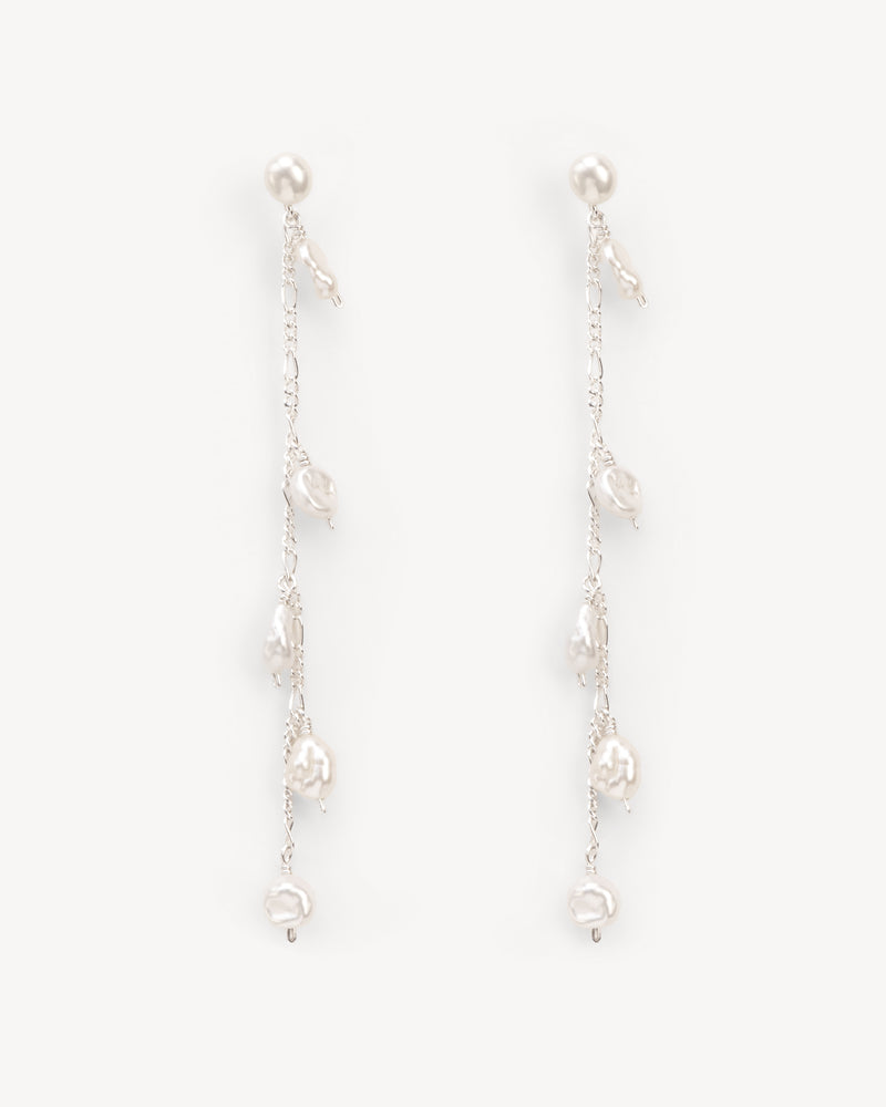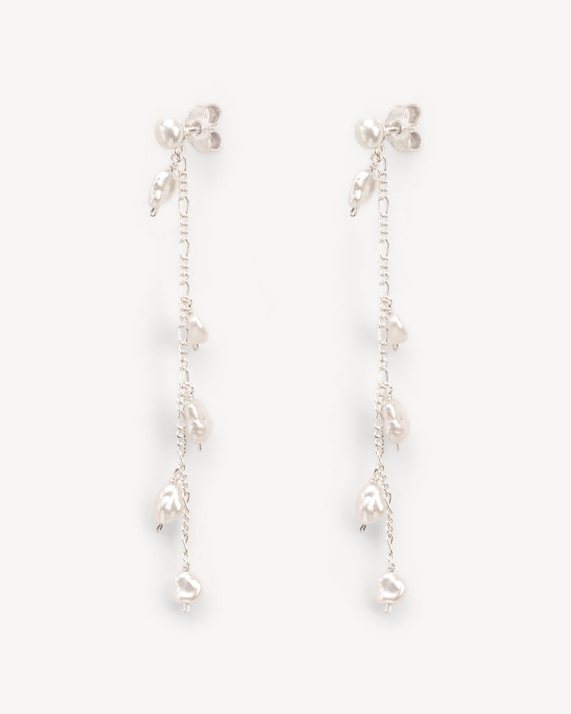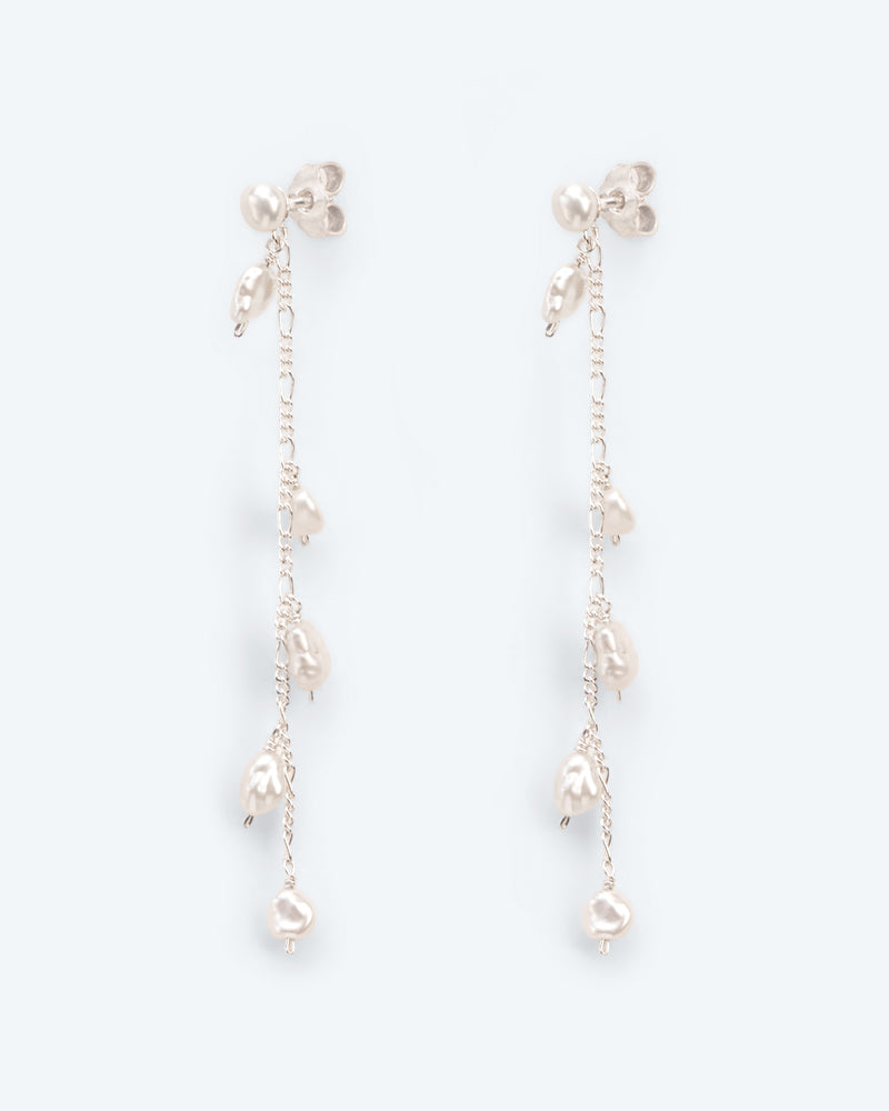 Bracelet with branch element, chains and pearls string in silver
