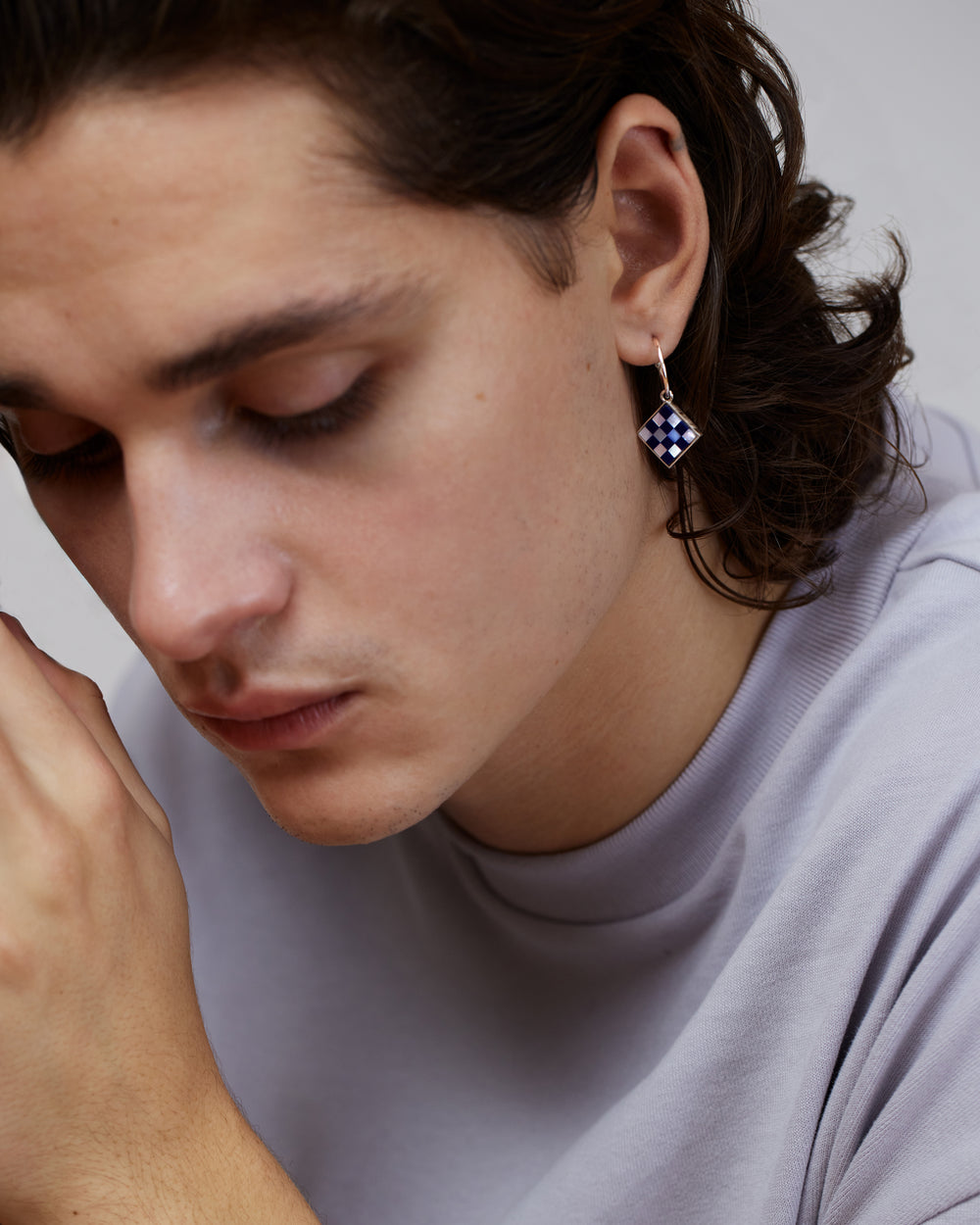Philidor ring with sapphire and diamond rotating chessboard in 18 ct. gold