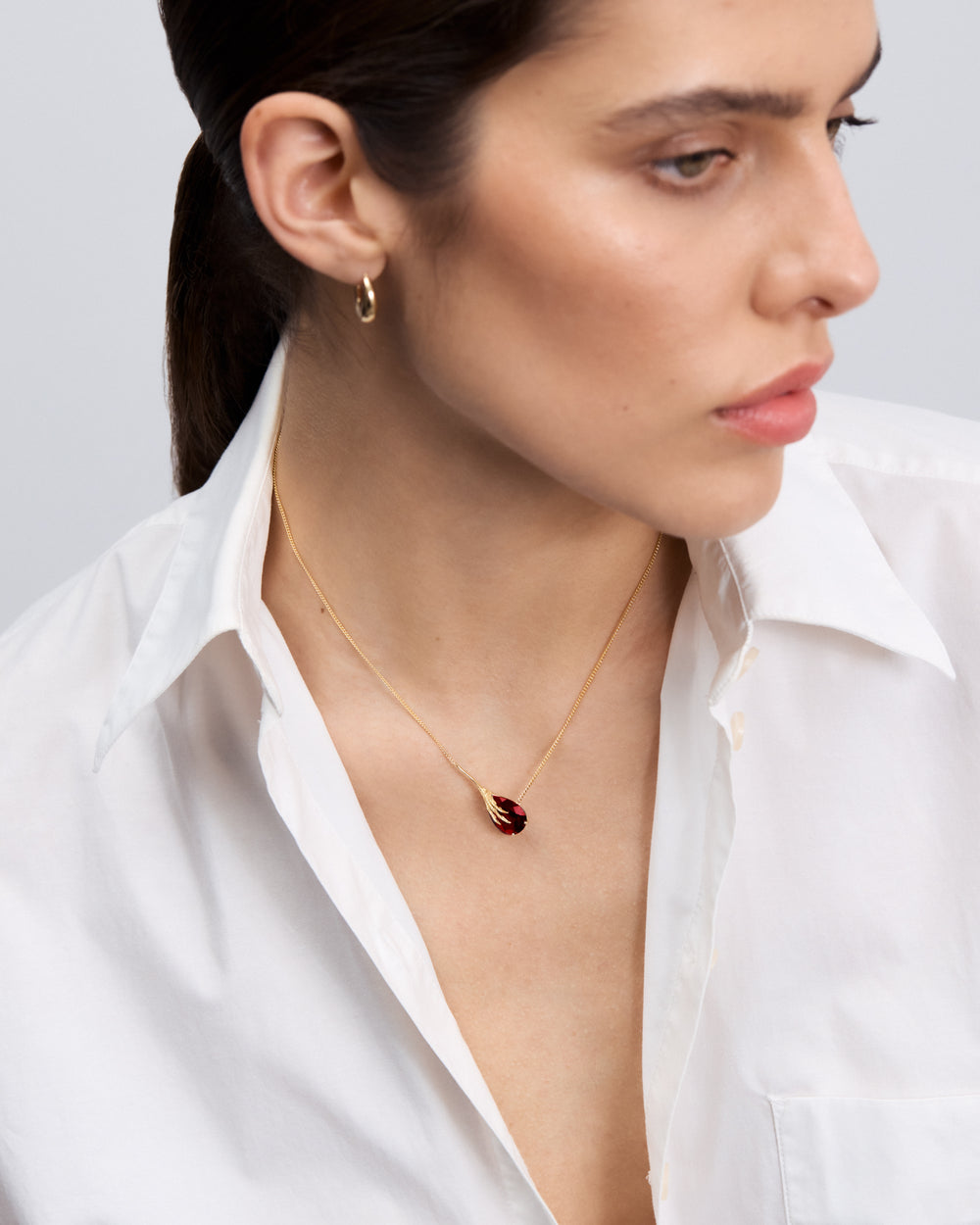 Necklace with signature grigri clasping a garnet in 18 ct. gold