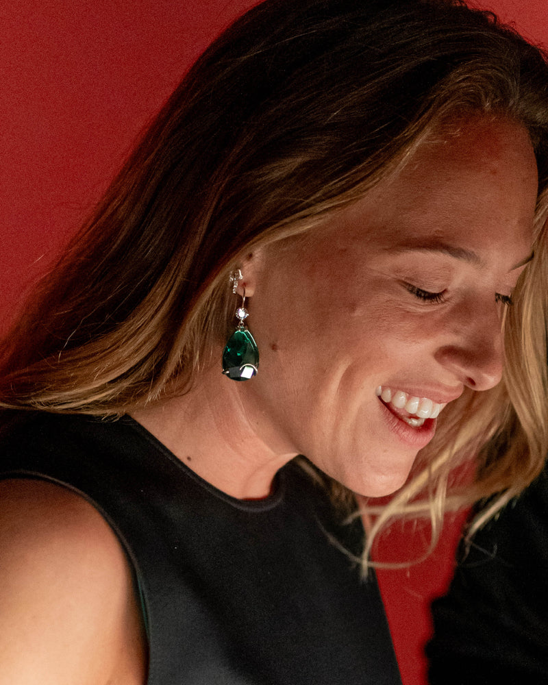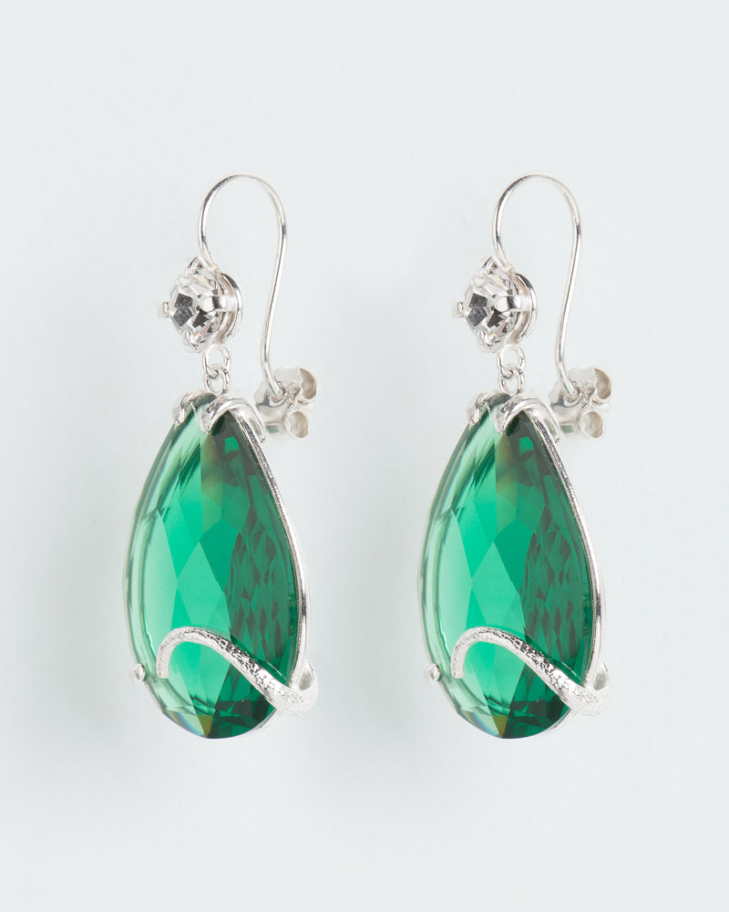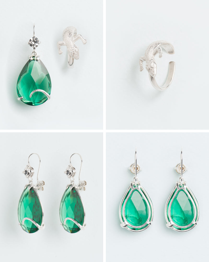 Hook earrings with emerald crystal drop and salamander tail element