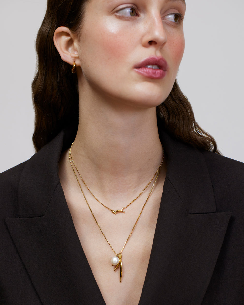 Necklace with mussel pendant and engravable medaillon in 18 ct. gold