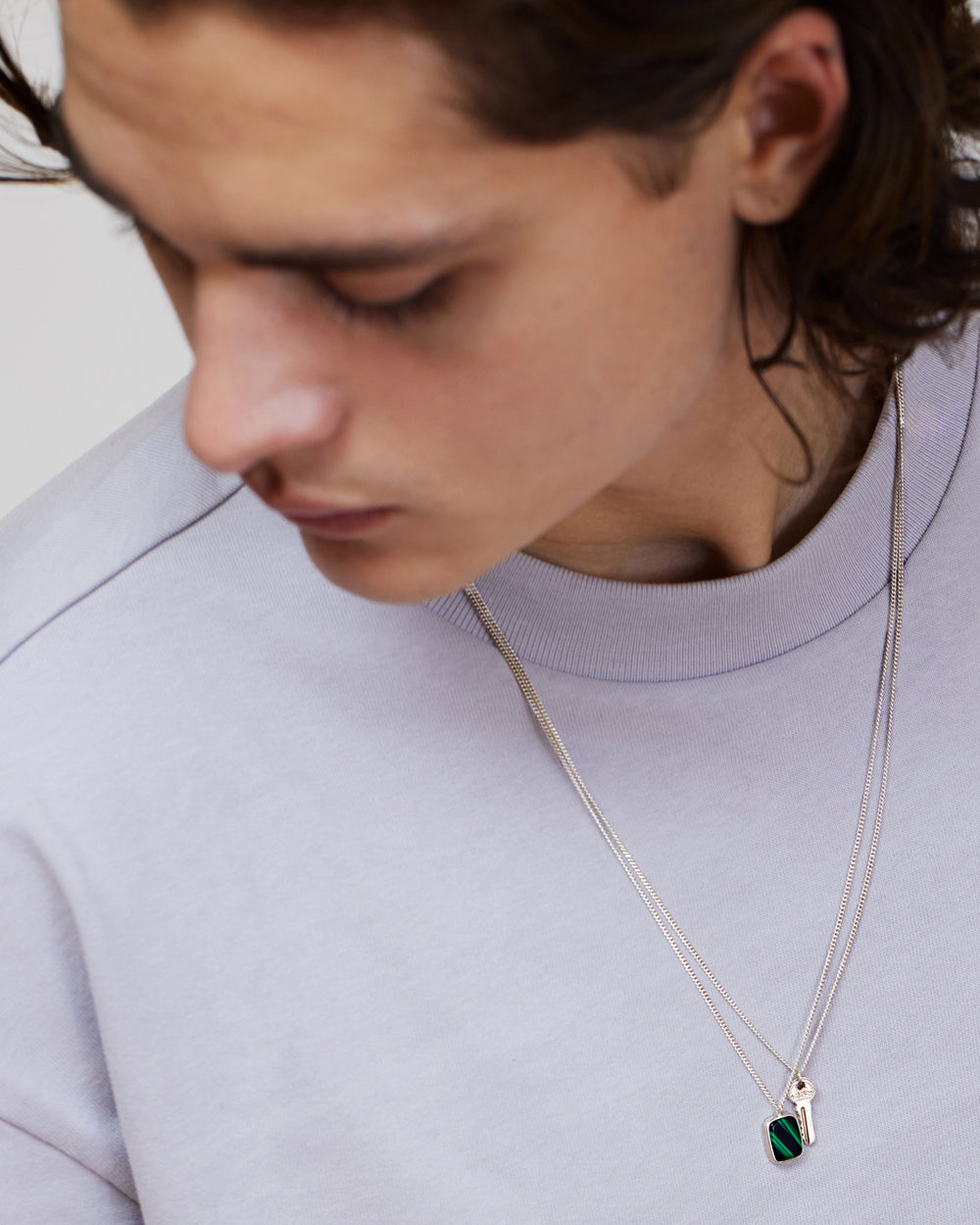 Necklace with onyx and mother of pearl mosaic and green agate pendants