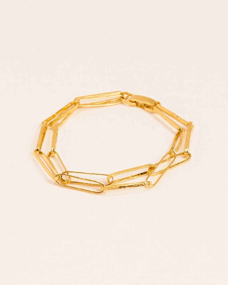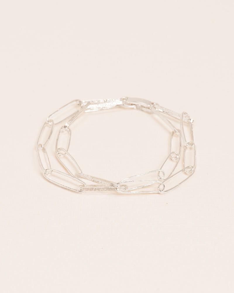 A flat link chain bracelet exposing the raw beauty of shimmering silver. Carefully hammered by hand in our Antwerp atelier. This traditional technique is loud, but the result is subtle in its simplicity. Crafted from Mother Nature’s most cherished gifts, ‘Les Eternelles' are treasures to have and to hold forever.