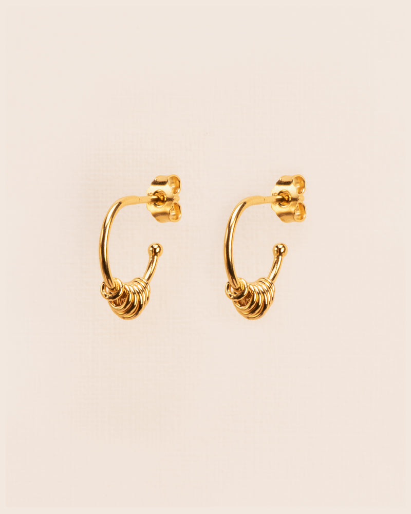 These small hoops holding a series of smaller hoops are part of the 'Les Eternelles' collection. The perfection of the fundamental circle shape is broken by the cherished imperfections resulting from our handcraft work in our Antwerp atelier. Exposing the intrinsic beauty of the material, 'Les Eternelles' are treasures to have and to hold forever.