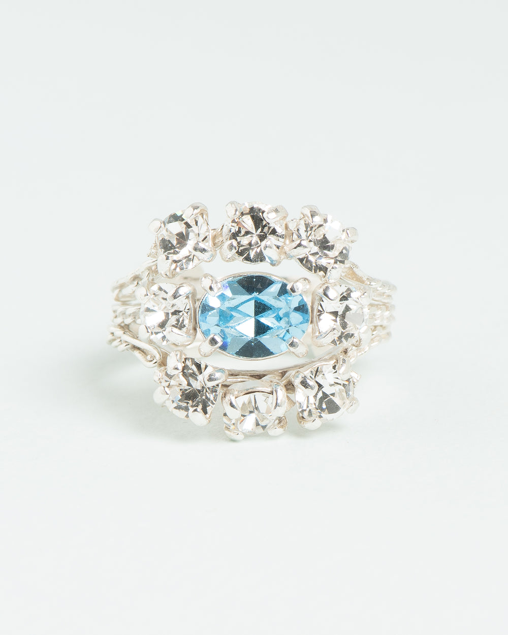 - Ring with aquamarine and detachable clear crystal party jacket.